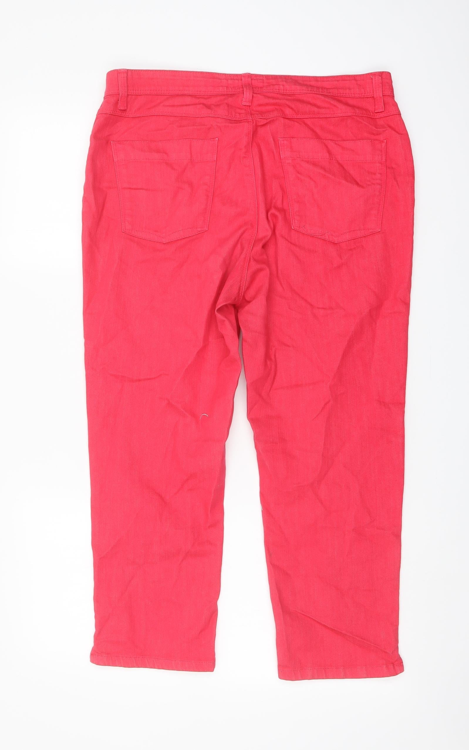 Per Una Womens Pink Cotton Straight Jeans Size 14 L23 in Regular Button