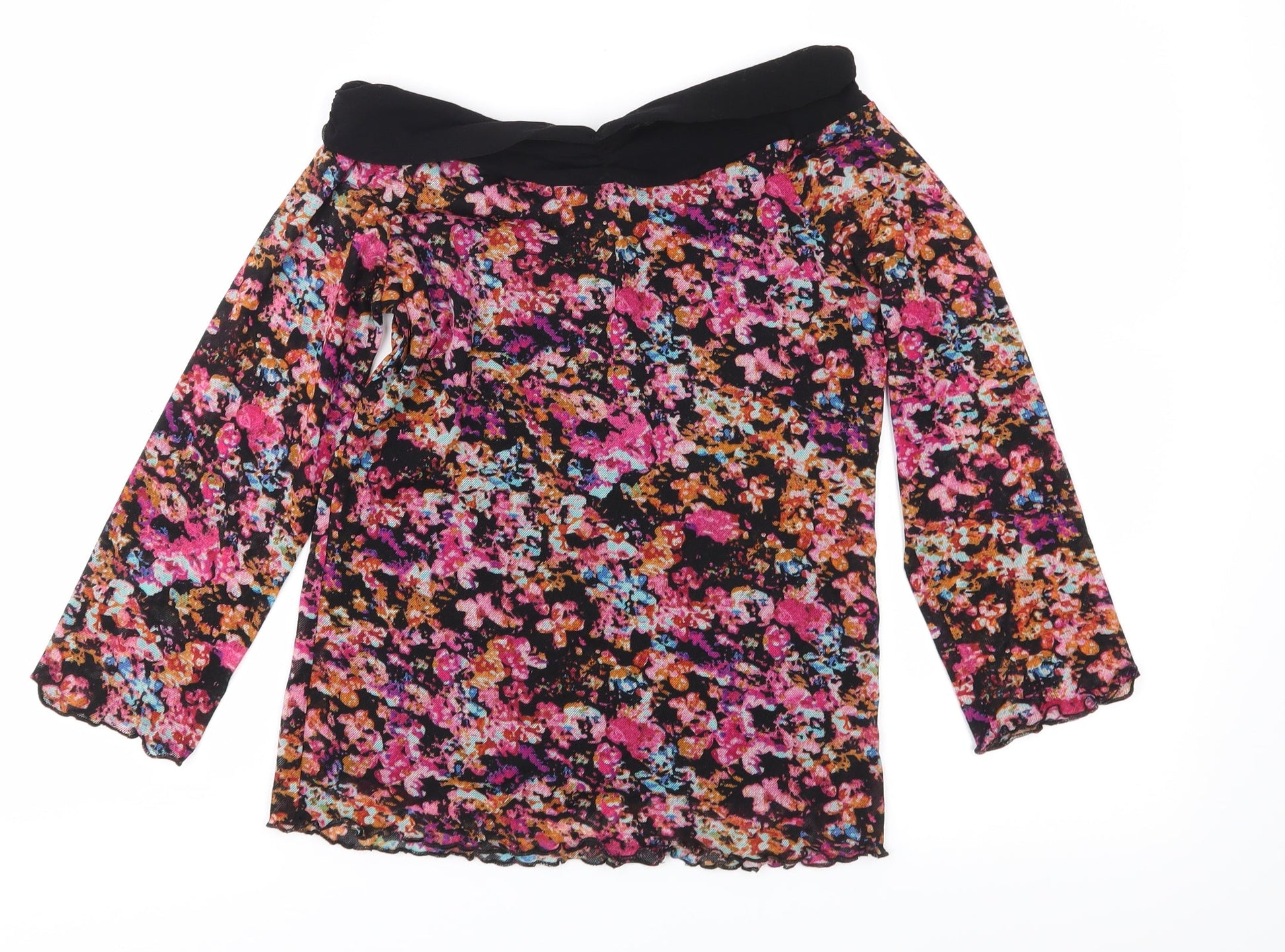 Per Una Womens Pink Floral Mesh Basic Blouse Size 14