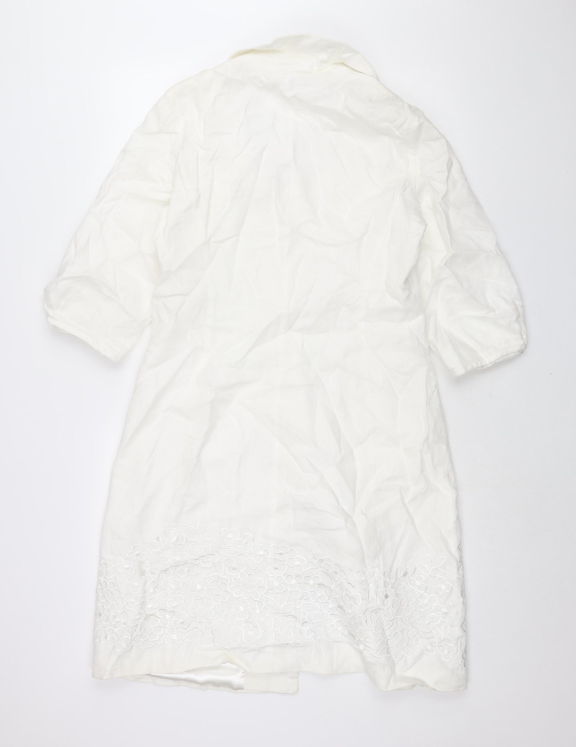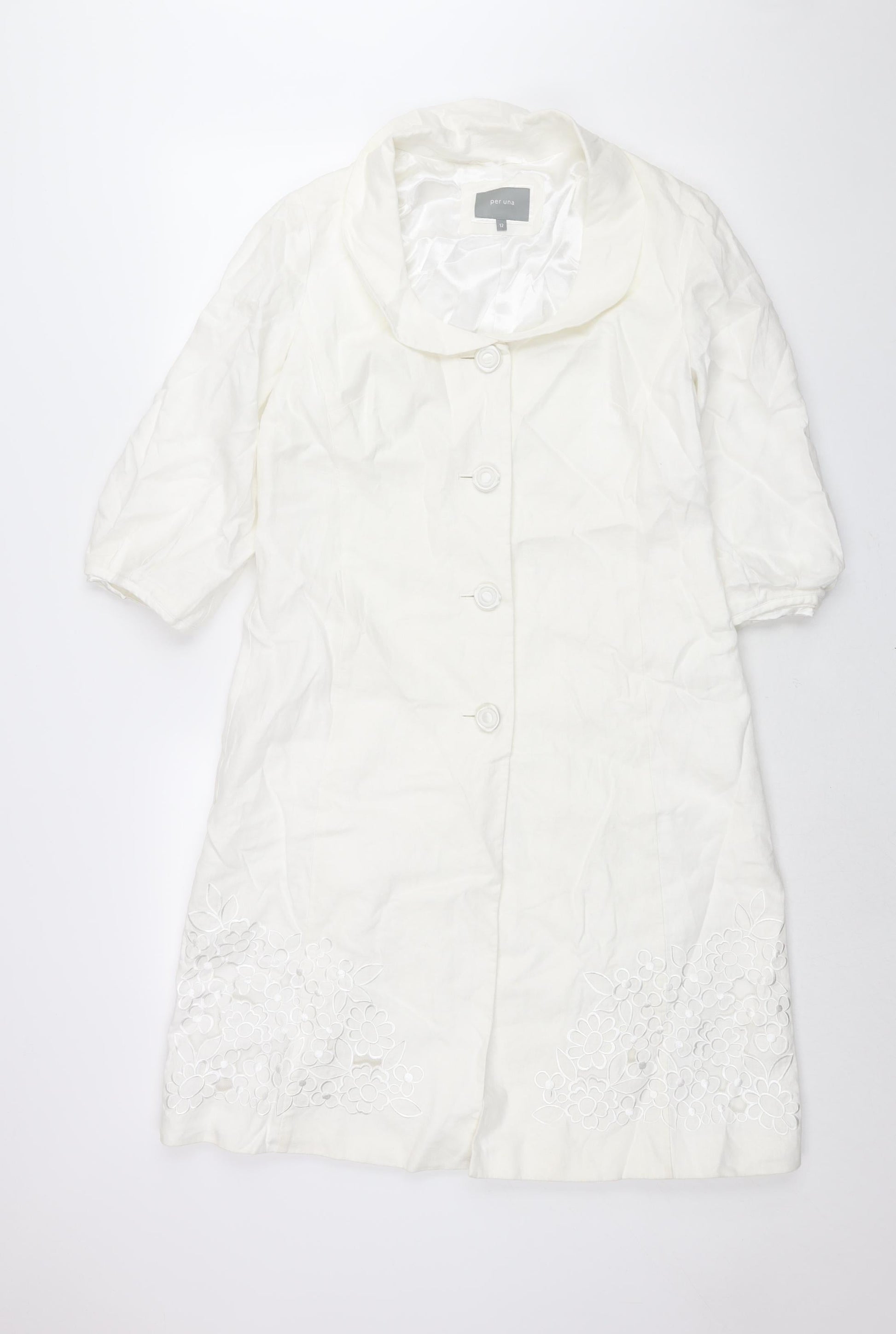 Per Una Womens White Overcoat Coat Size 12 Button - Embroidered Detail