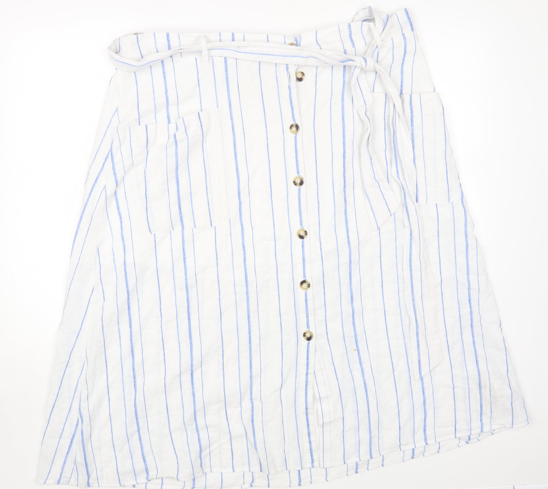 Per Una Womens White Striped Cotton A-Line Skirt Size 20 Tie