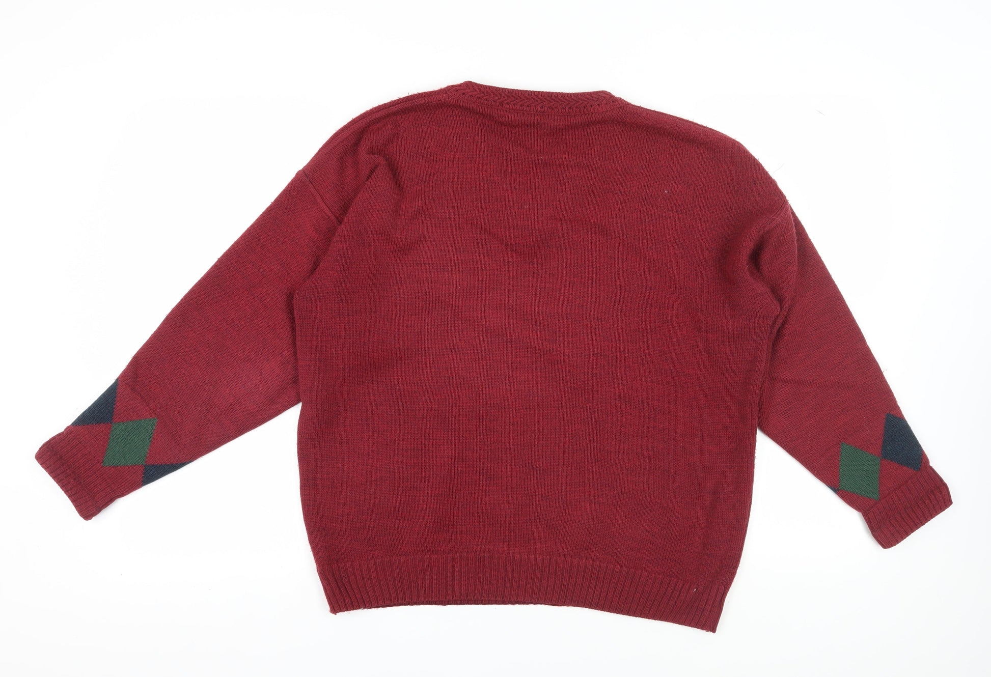 Peter Gribby Men's Red Argyle Golf Pullover Jumper M