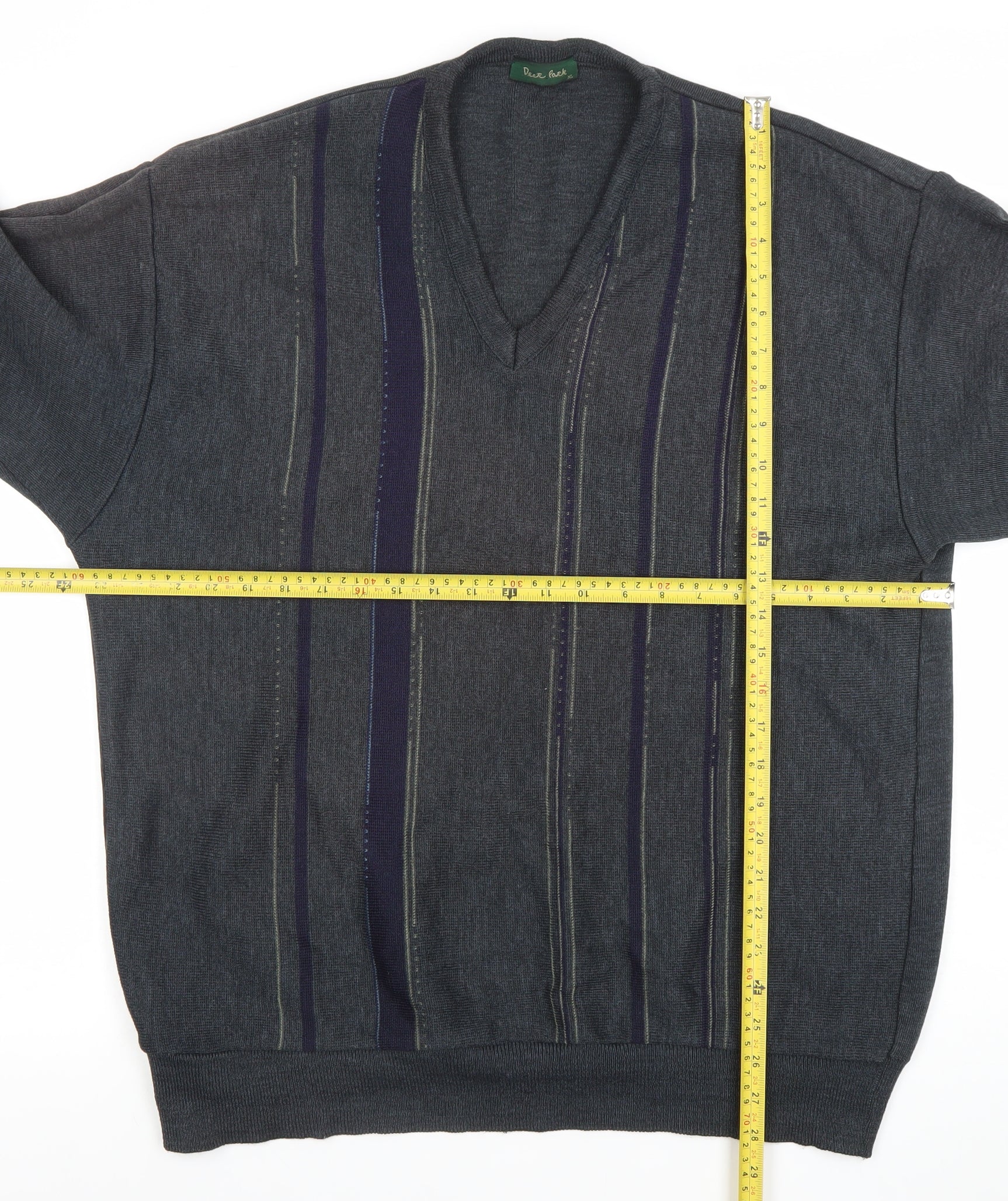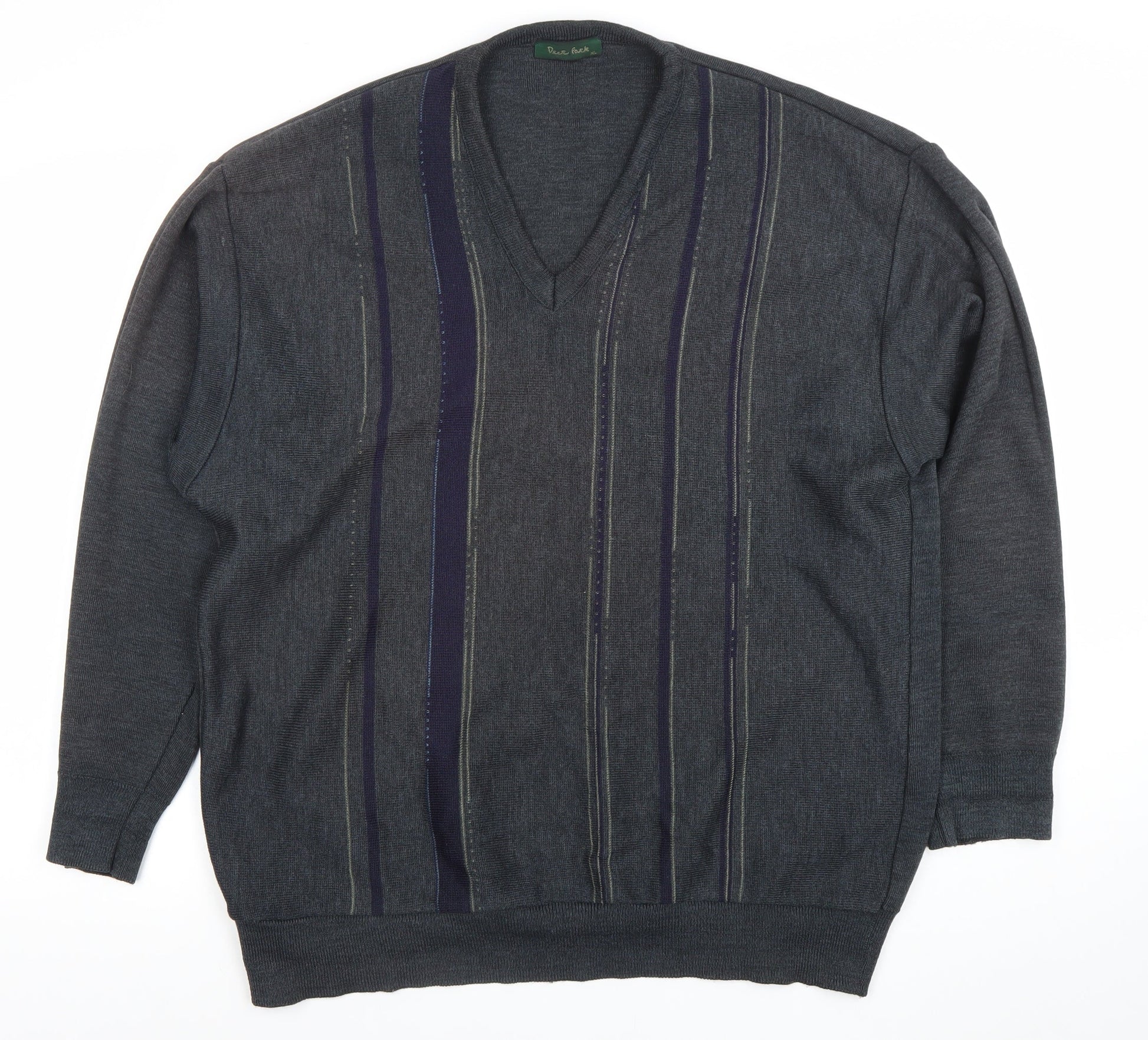 Peter Rath Men’s Grey Striped V-Neck Wool Blend Jumper XL