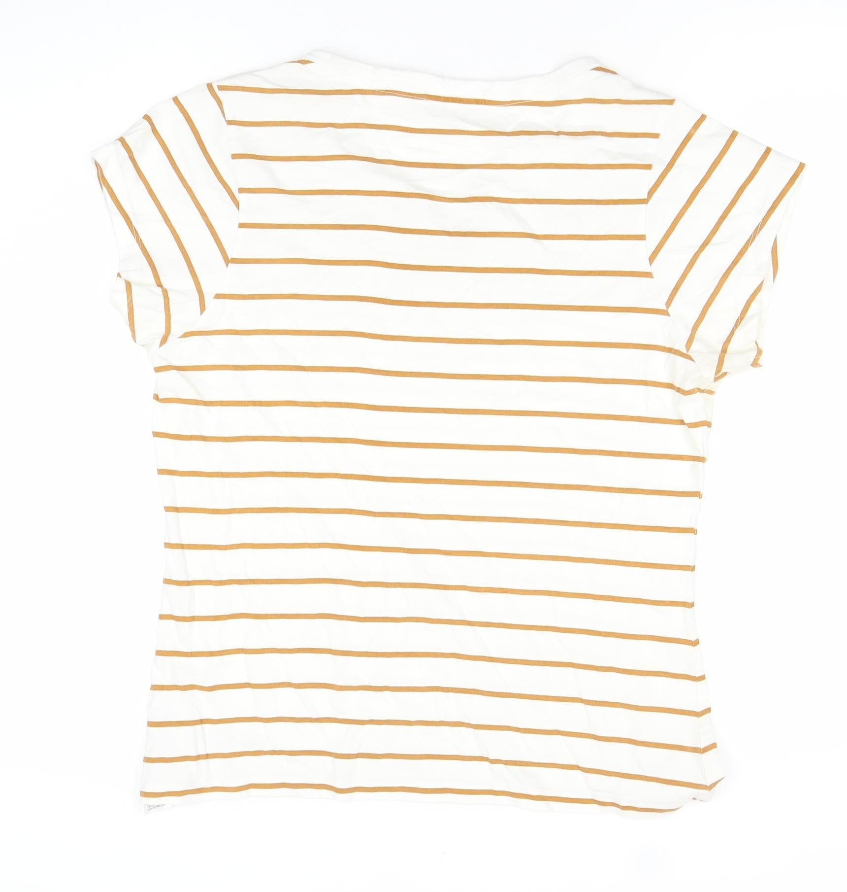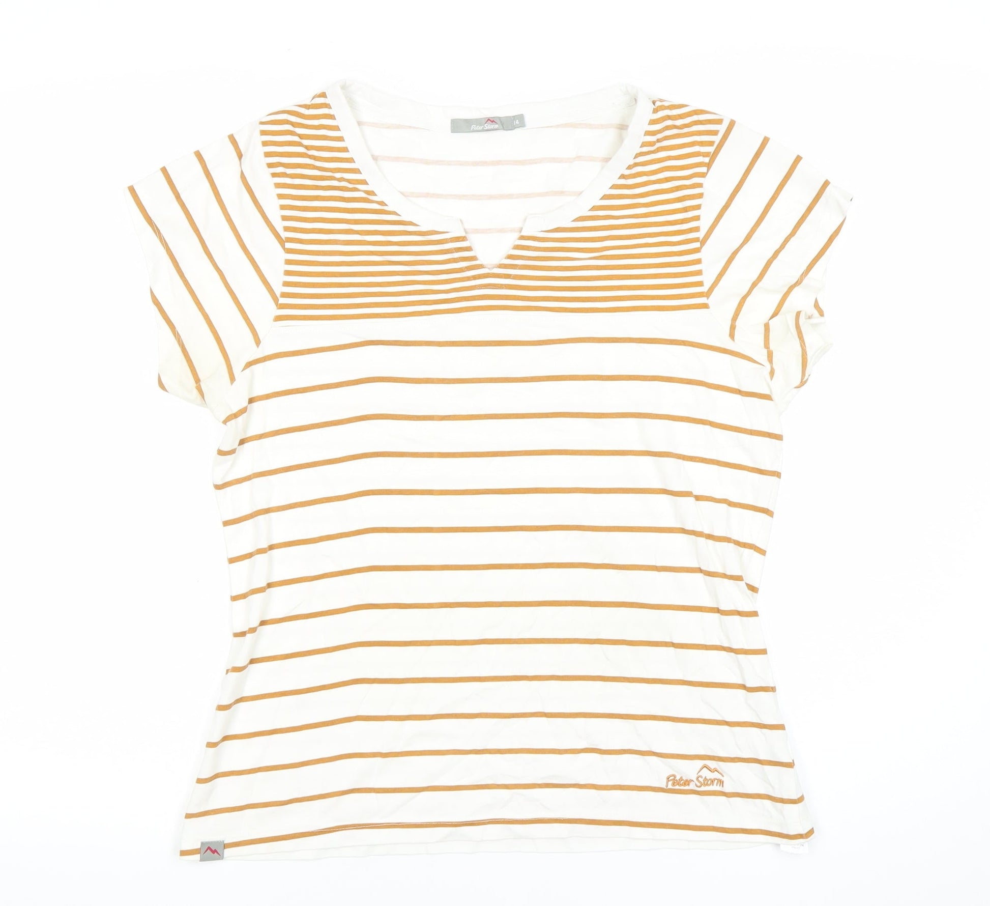 Peter Storm Women White Striped Cotton T-Shirt Size 14