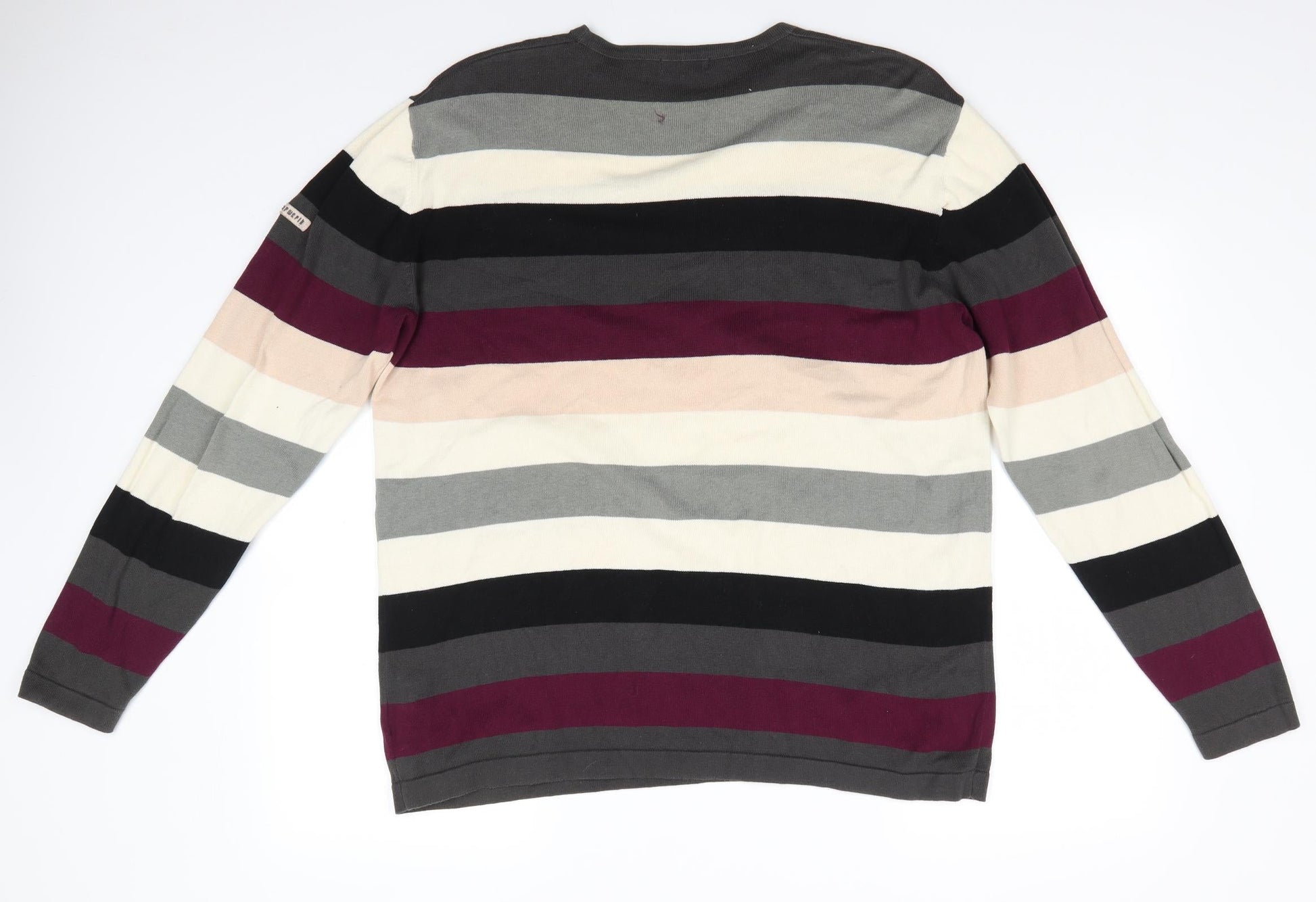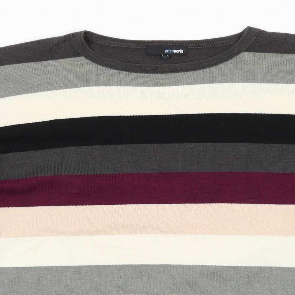 Peter Werth Mens Multicoloured Round Neck Striped Cotton Pullover Jumper