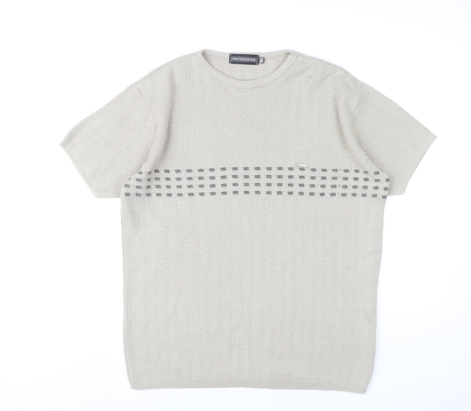 Petroleum Men’s Beige Knit Pullover Jumper M Crew Neck Short Sleeve