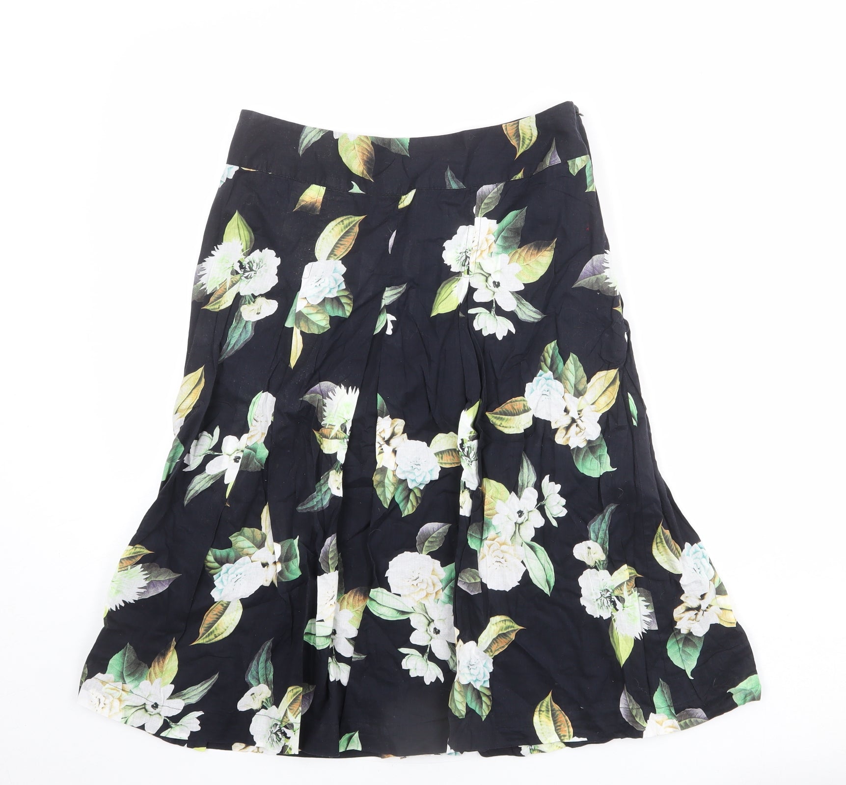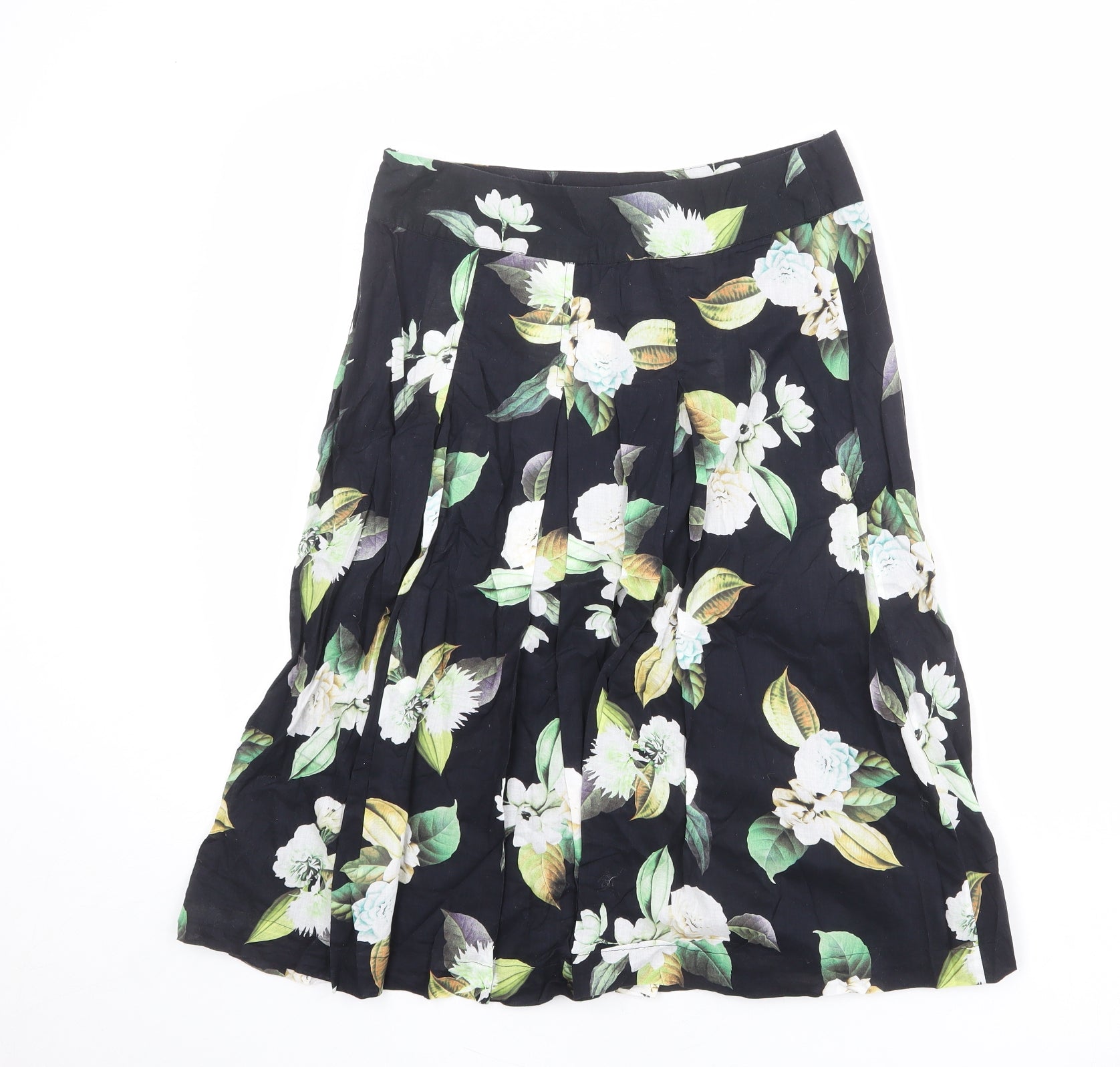 Phase Eight Womens Black Floral Cotton Swing Skirt Size 10 Zip
