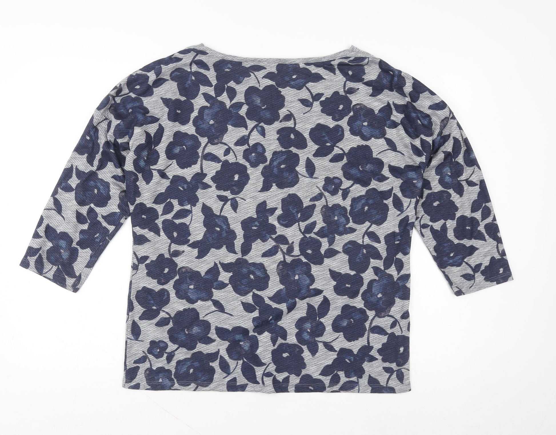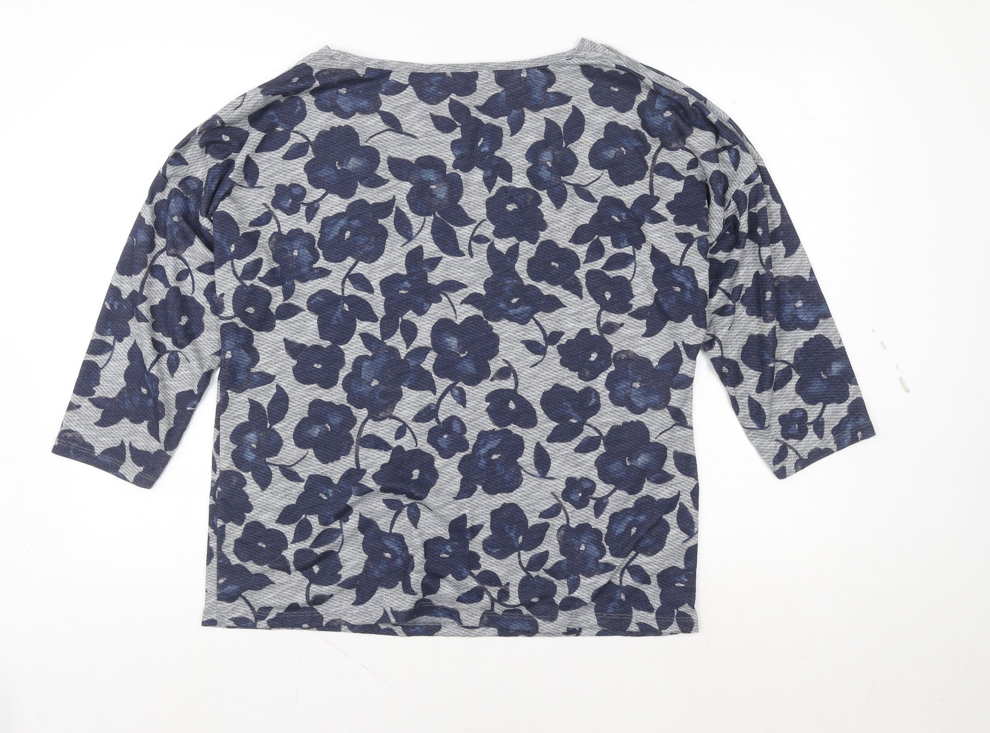 Phase Eight Women's Blue Floral Jersey Blouse UK 14 3/4 Sleeve
