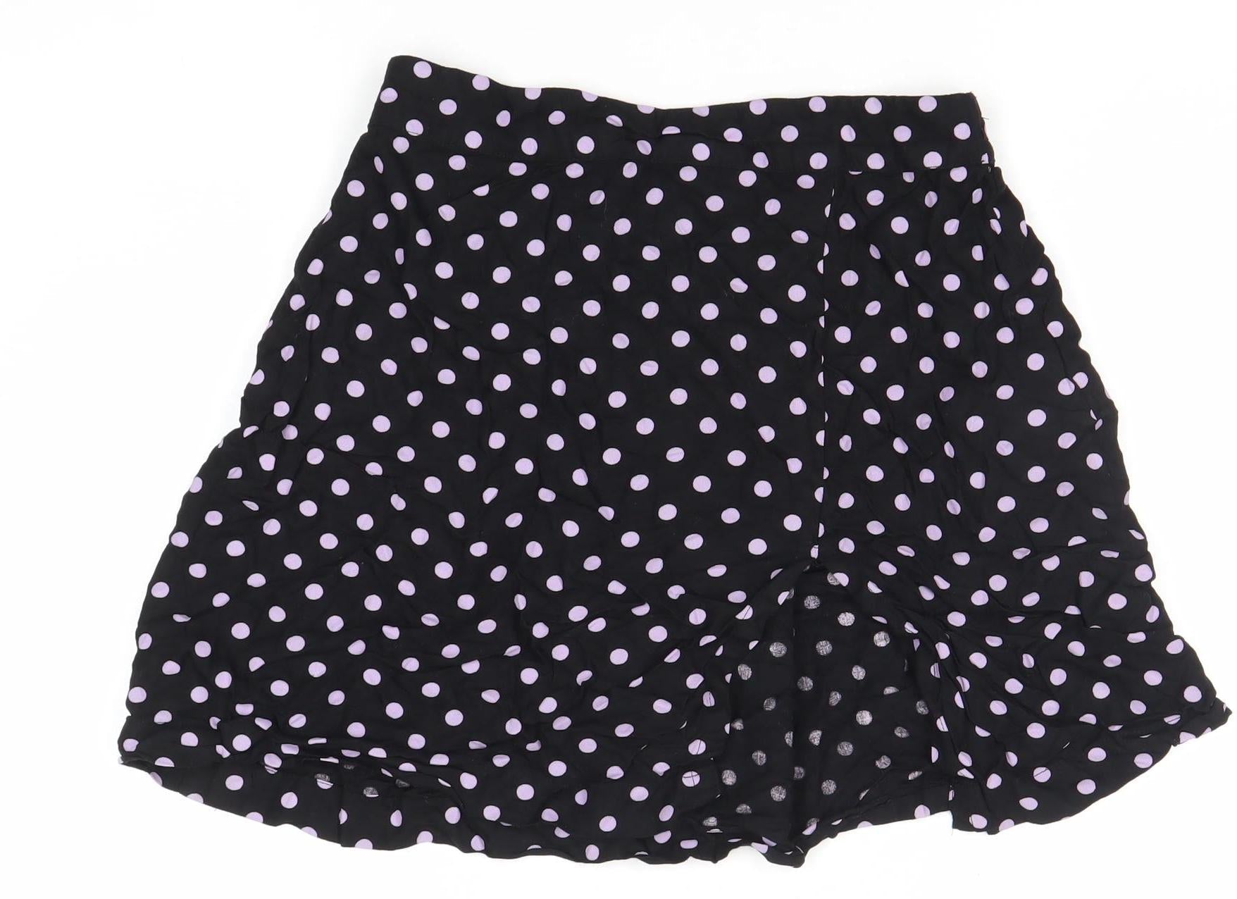 Pieces Women's Black Polka Dot A-Line Skirt M