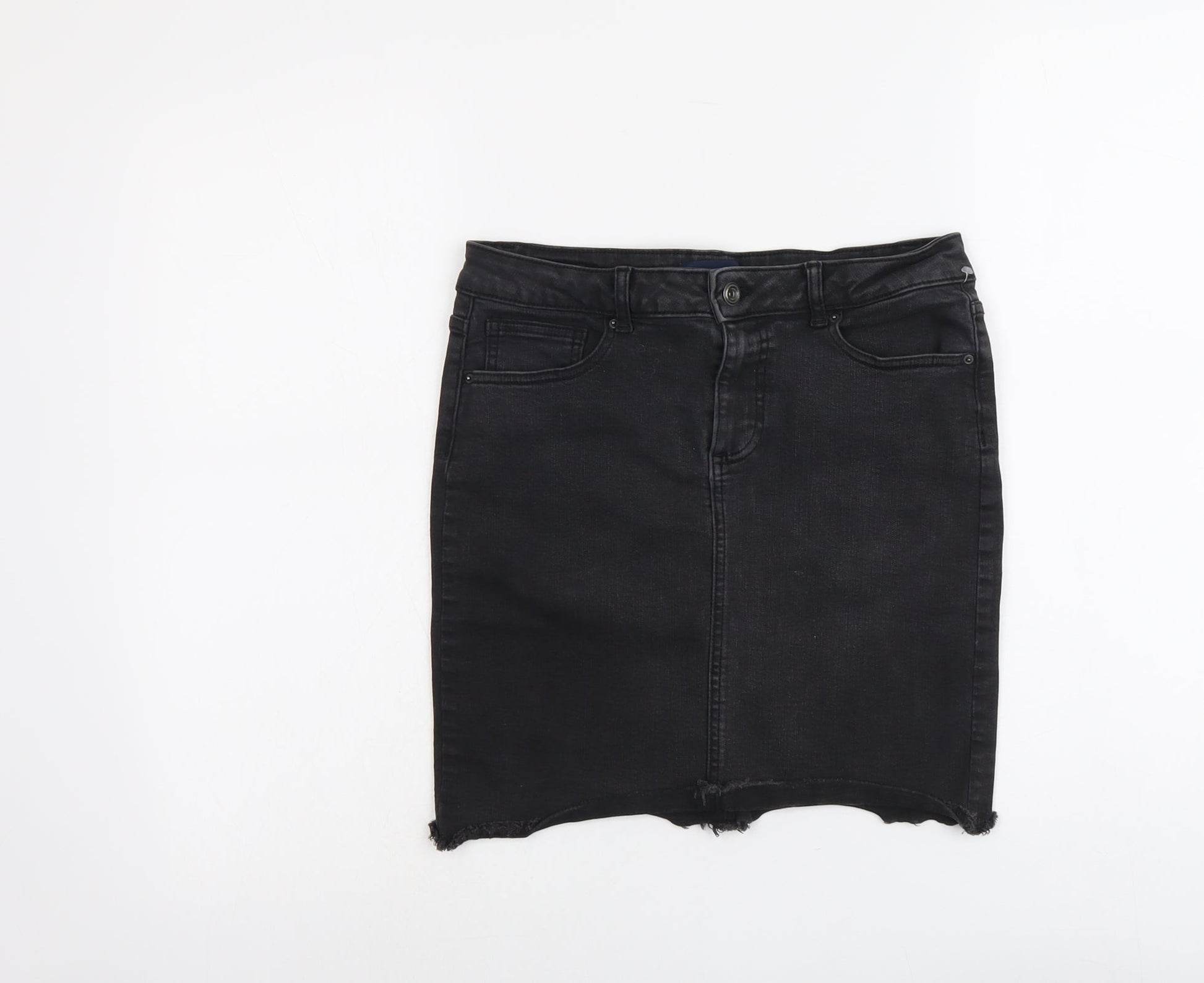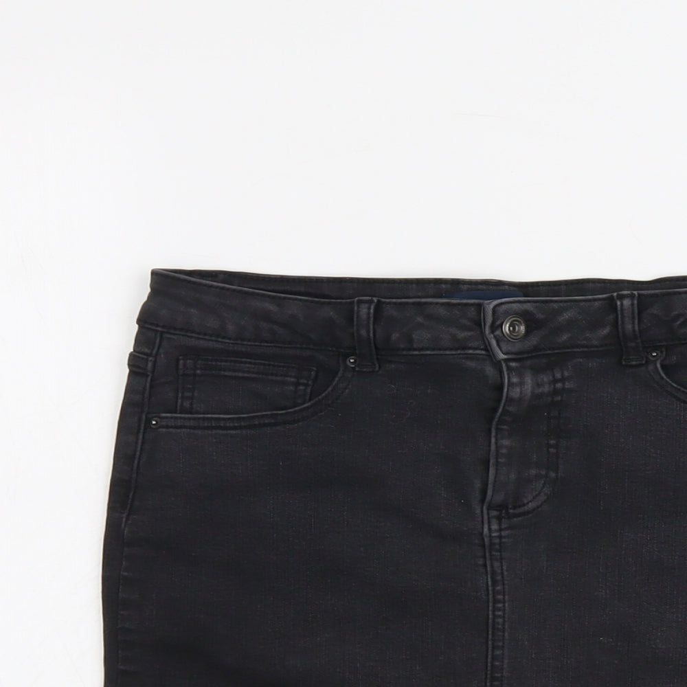 Pieces Womens Grey Cotton A-Line Skirt Size L Button