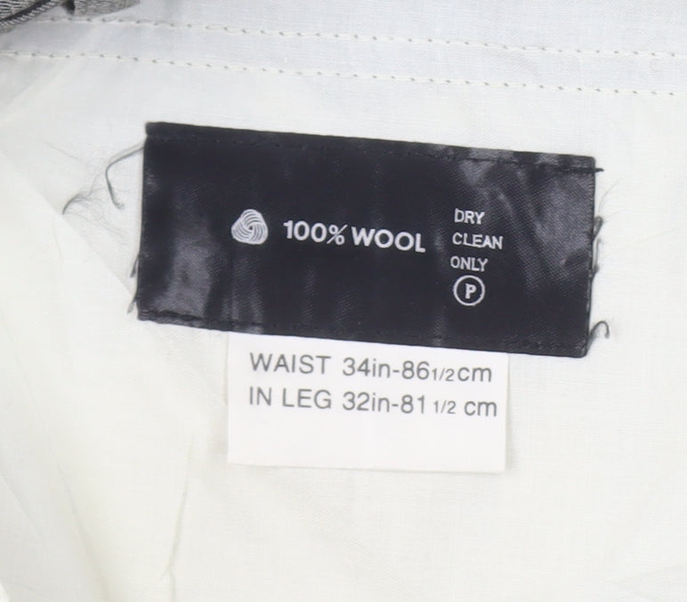 Pierre Balmain Men's Grey Wool Trousers, 34 Waist, 32 Leg
