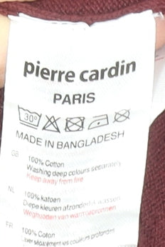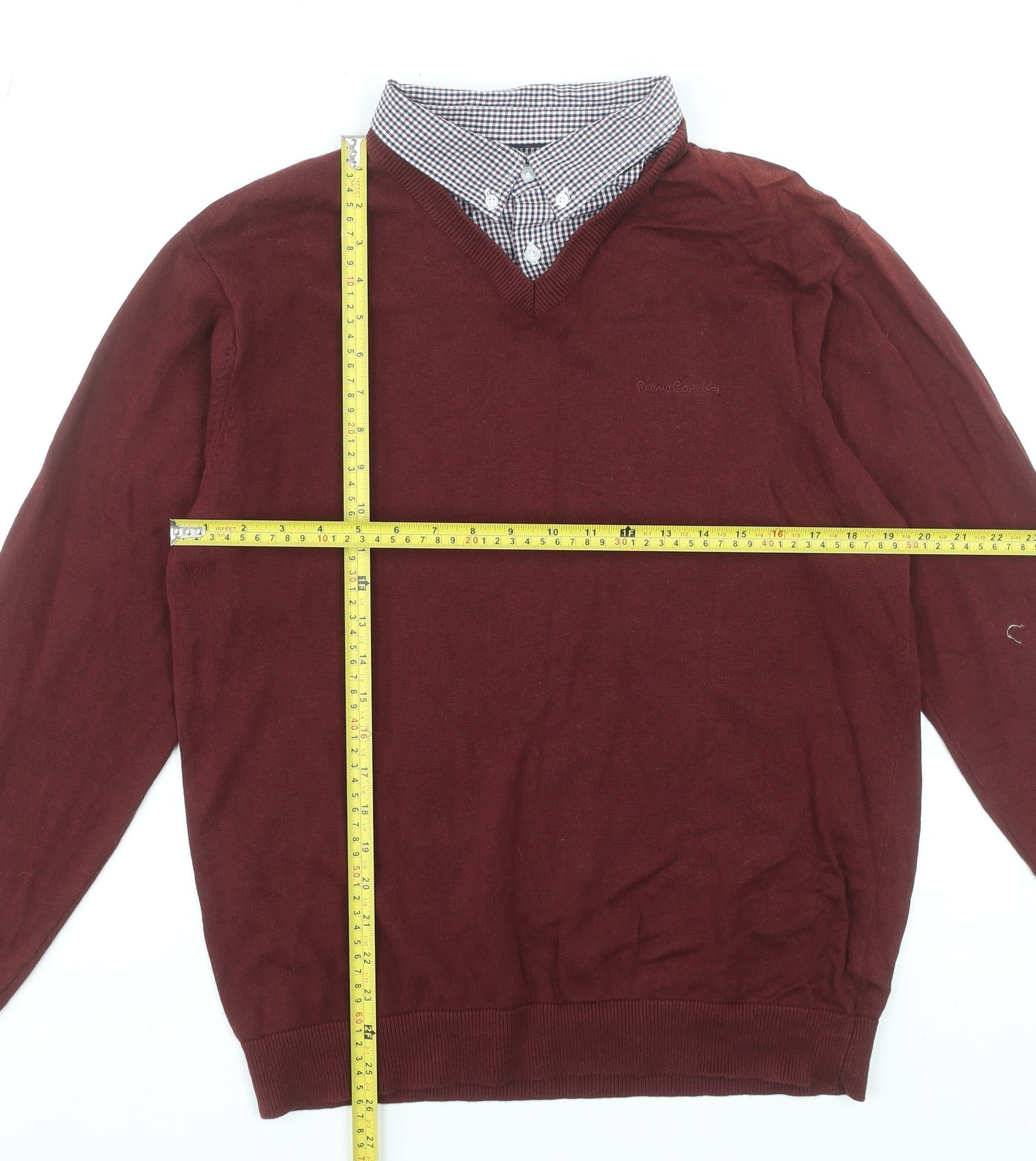 Pierre Cardin Men Red V-Neck Cotton Pullover Jumper Size L