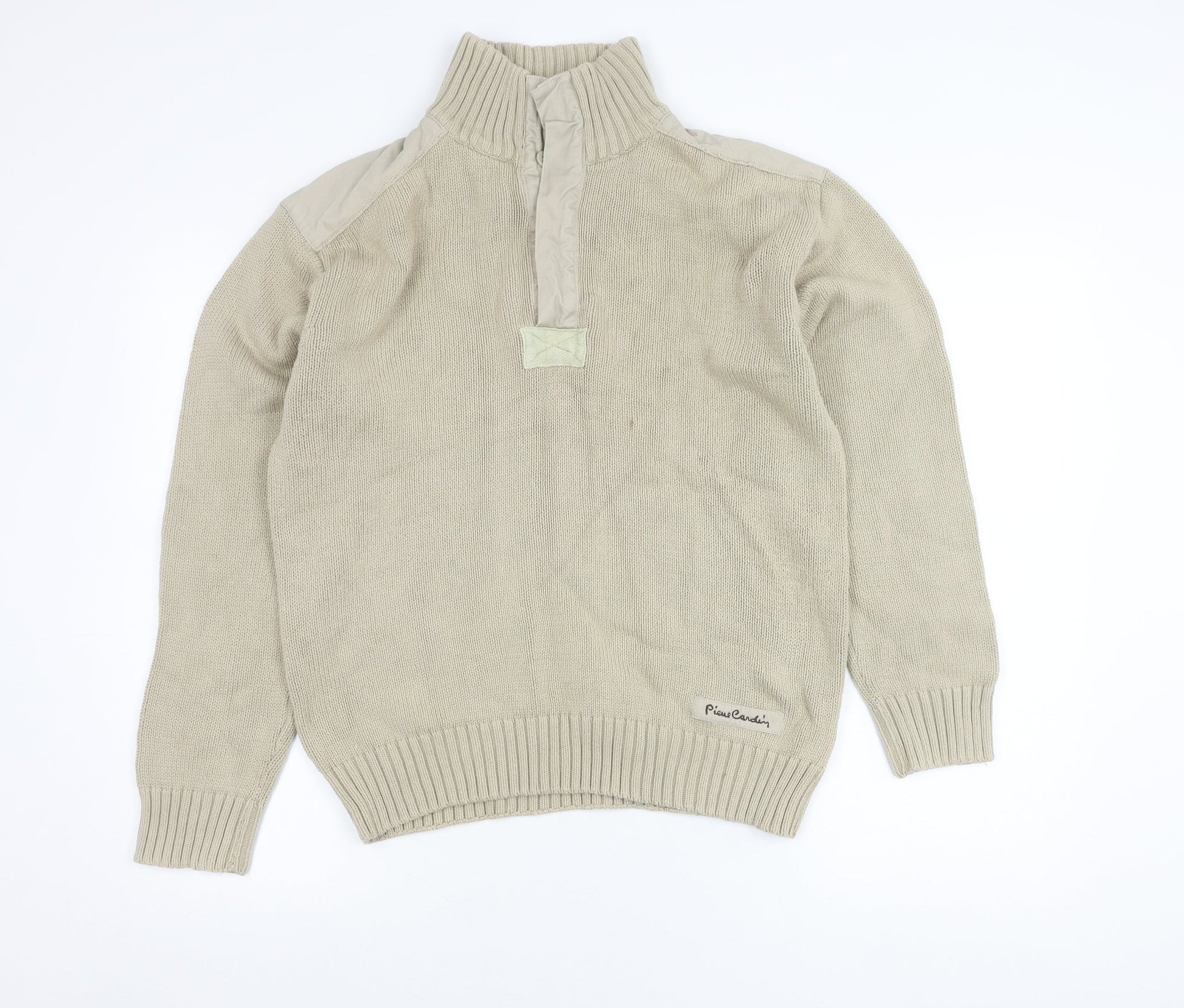 Pierre Cardin Men's Beige Cotton 1/4 Zip Pullover Jumper M