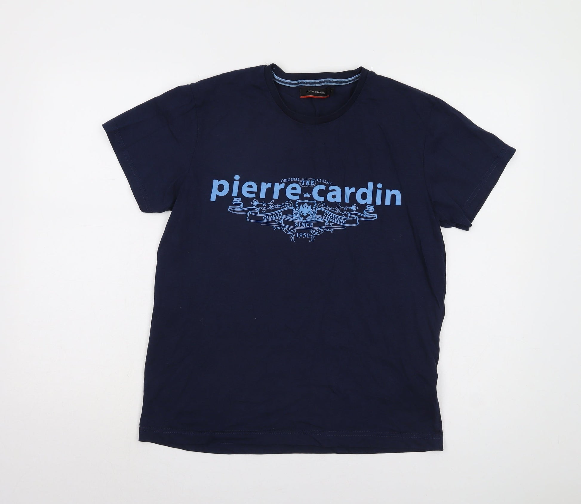 Pierre Cardin Men's Blue Graphic Logo T-Shirt Medium