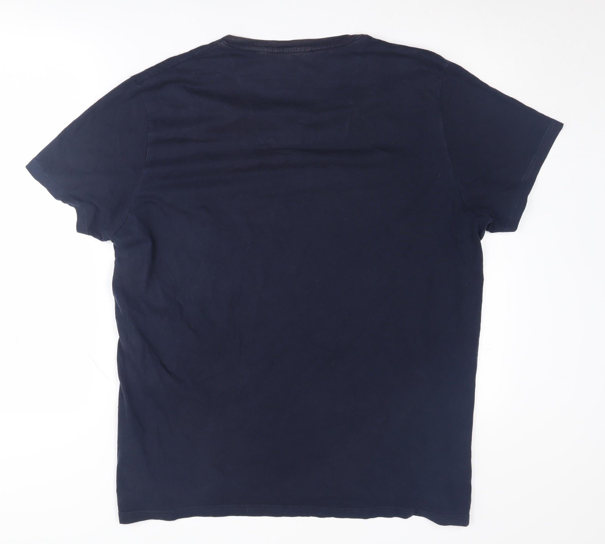 Pierre Cardin Men's Blue V-Neck 2XL T-Shirt, Short Sleeve