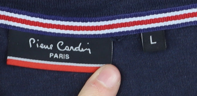 Pierre Cardin Men's Blue V-Neck T-Shirt - Size L