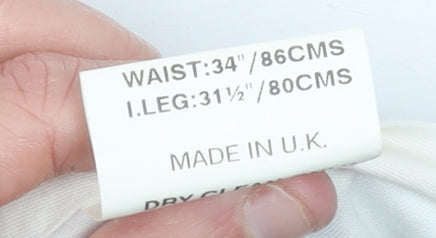 - Waist size: 34 in