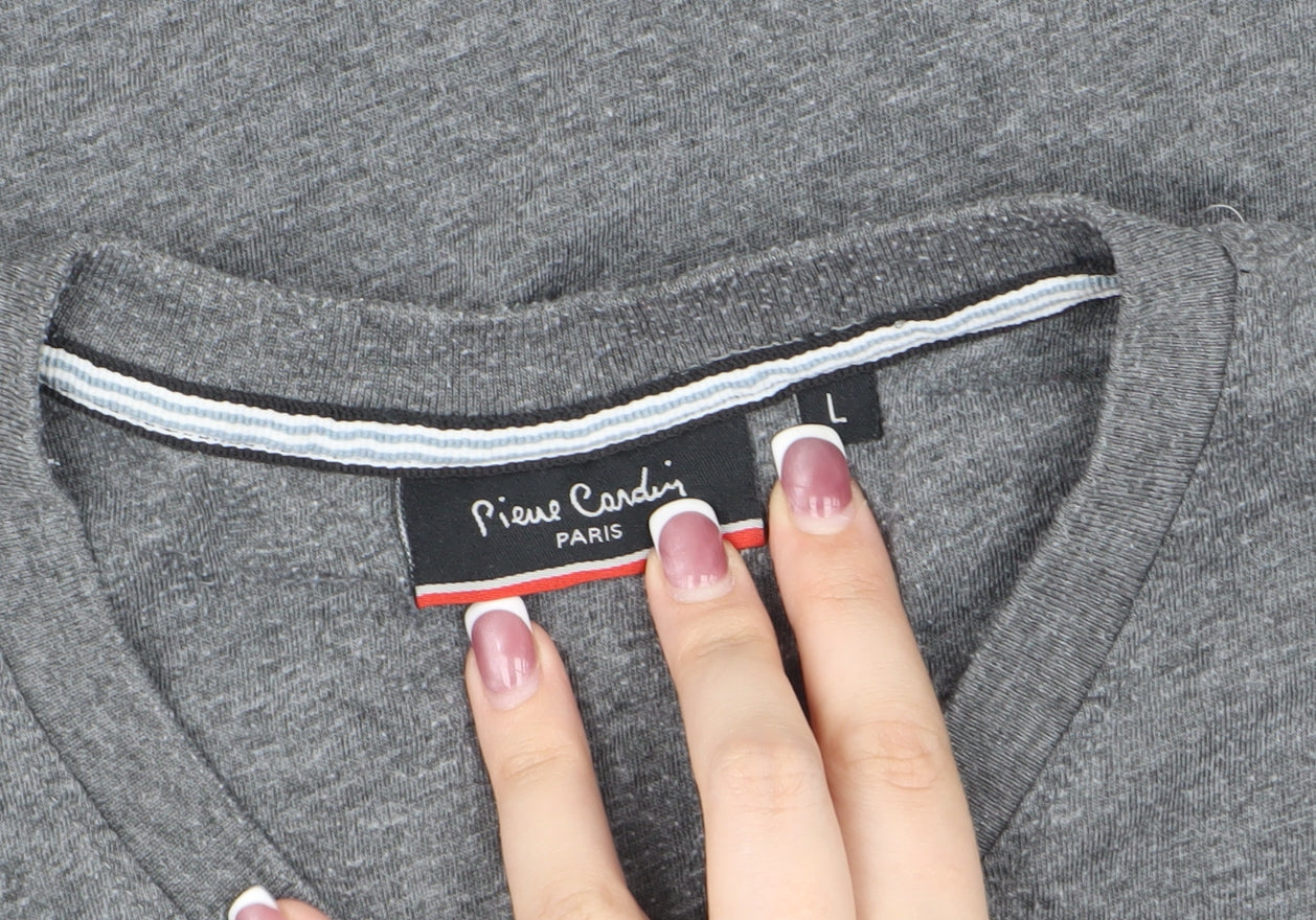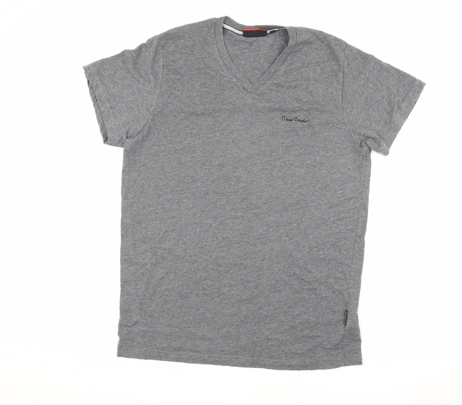 Pierre Cardin Men's Grey V-Neck Logo T-Shirt Size L