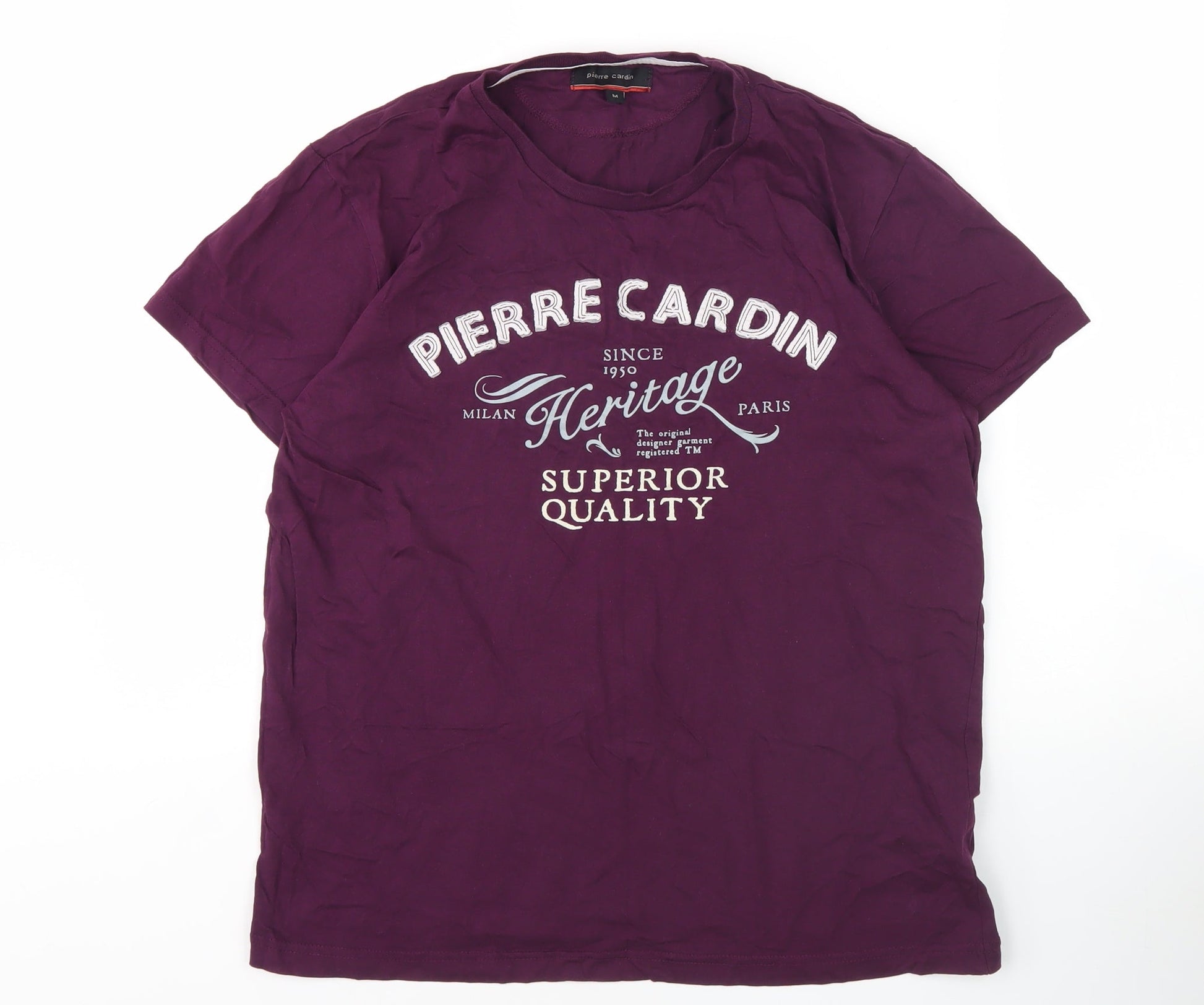 Pierre Cardin Men's Purple Graphic T-Shirt, M, Crew Neck