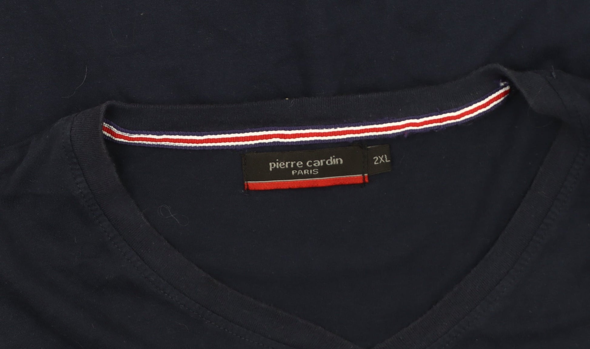 Pierre Cardin Men's V-Neck T-Shirt 2XL Blue Logo