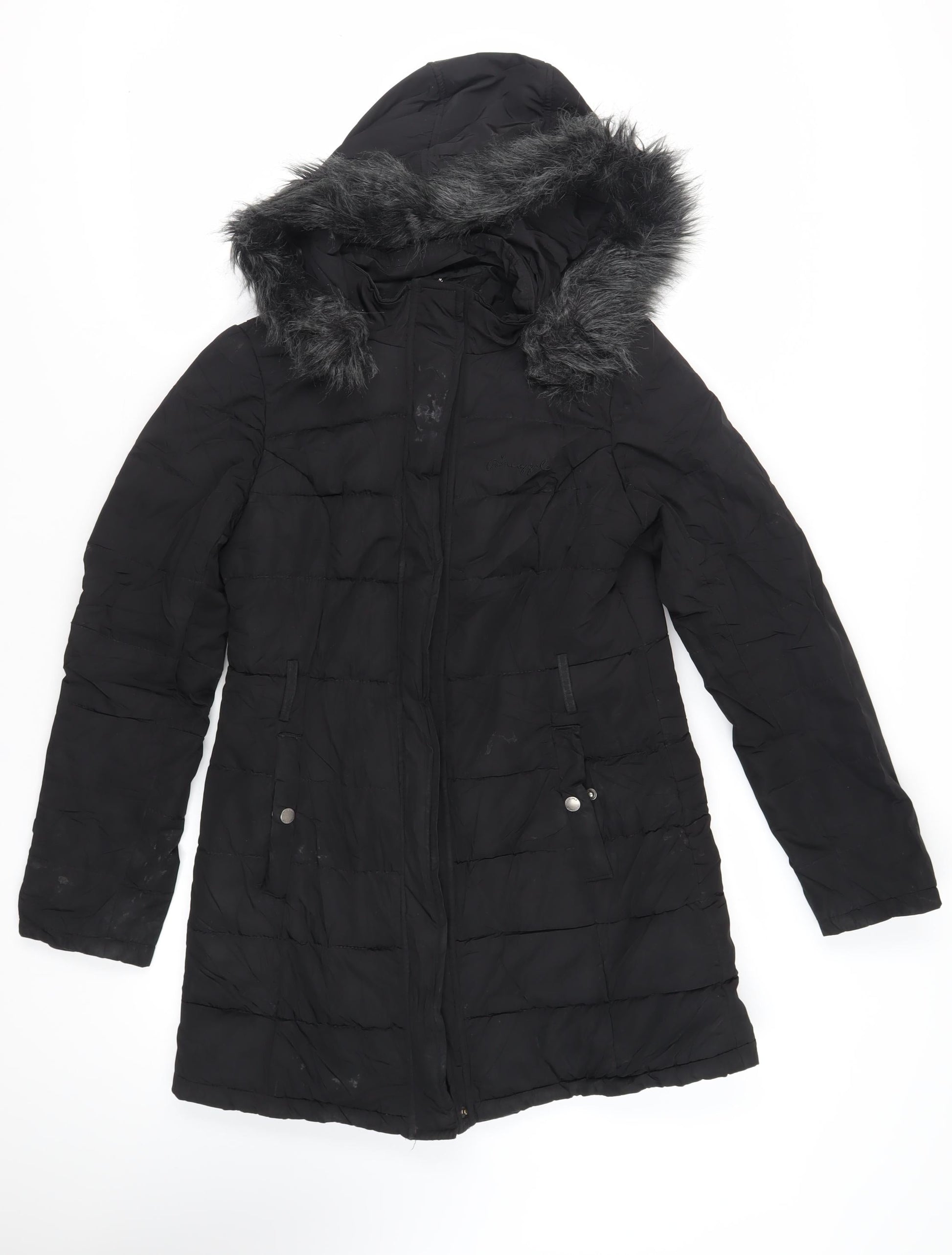 Pineapple Womens Black Quilted Coat Size 10 Zip - Hooded Logo
