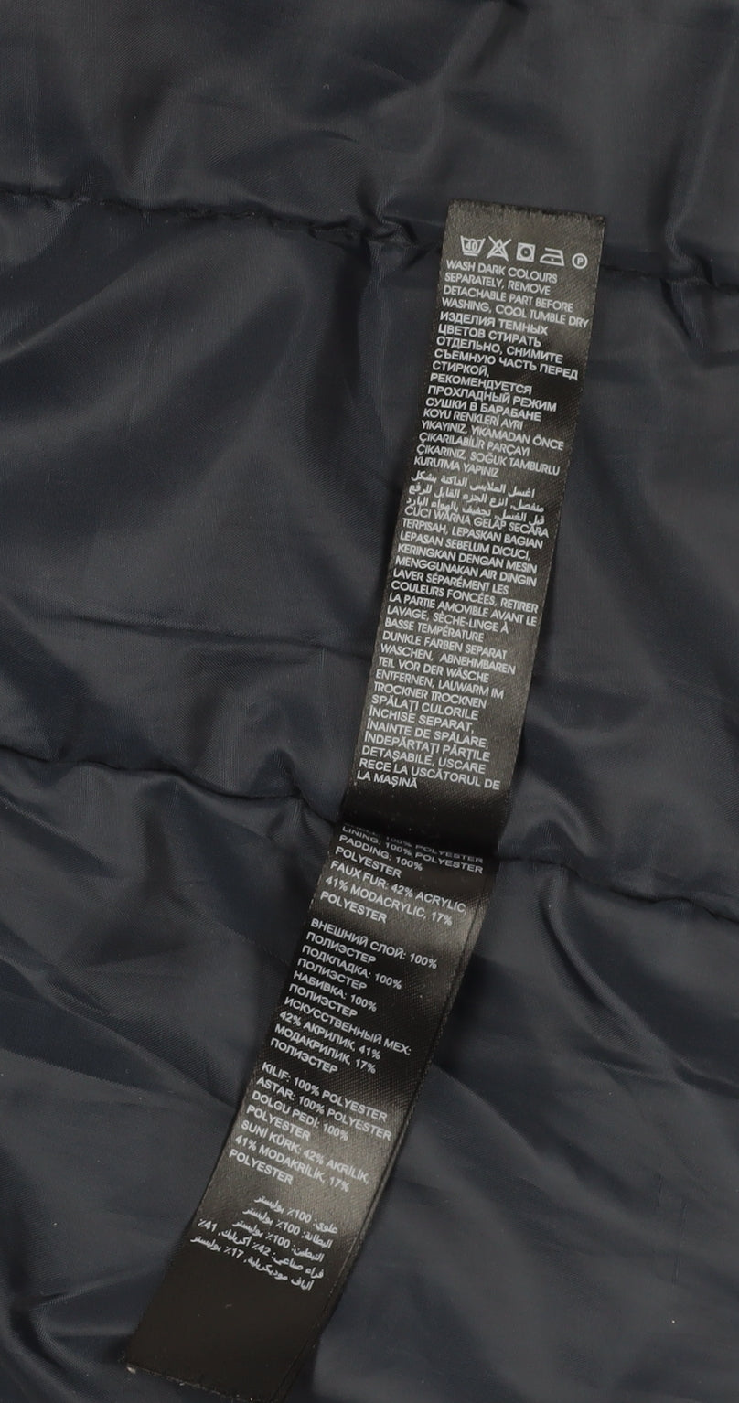 Pineapple Women's Blue Parka Coat Fur Trim Zip Size 10