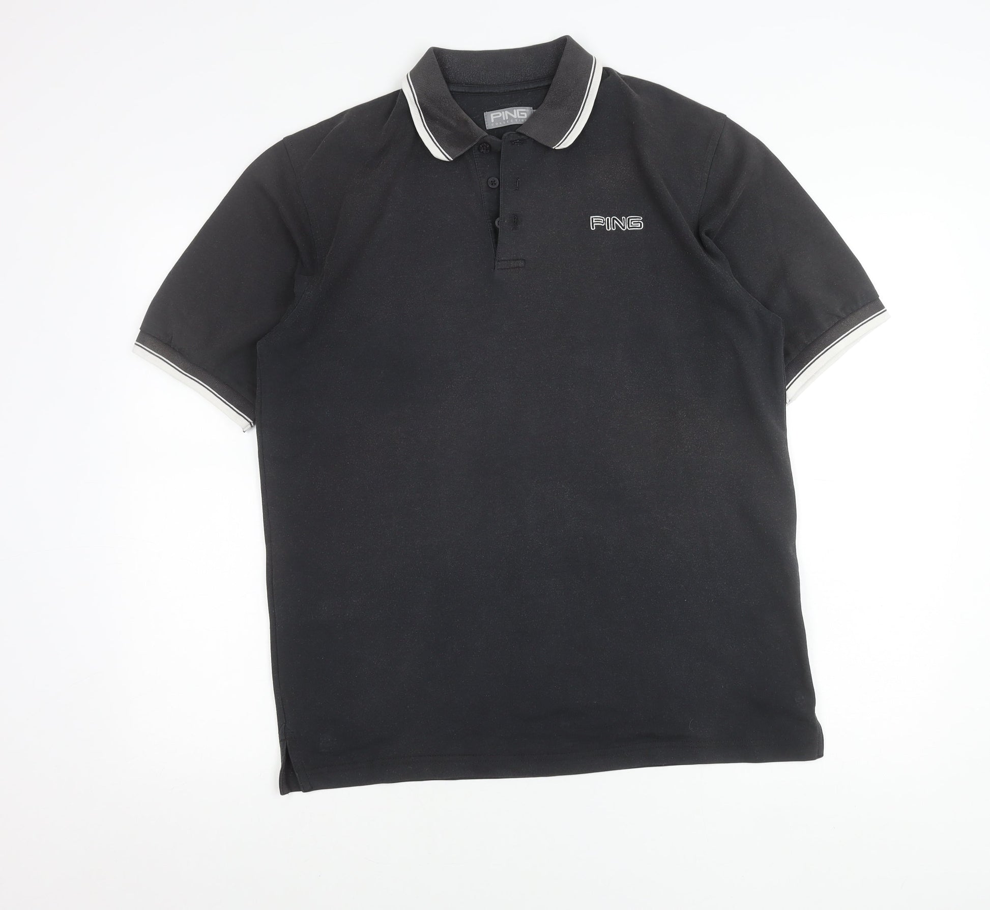 PING Men’s Black Polo Shirt M Short Sleeve Cotton Blend Golf Top