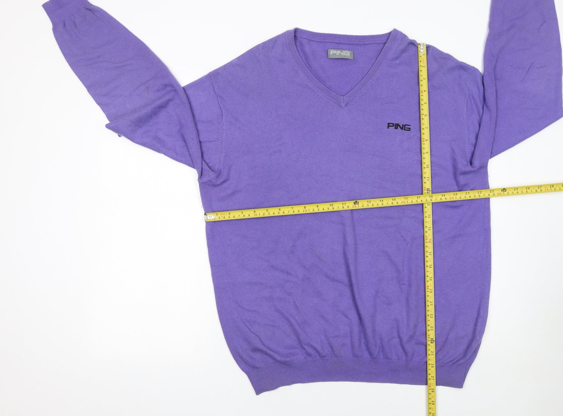 PING Men's Purple V-Neck Cotton Blend Golf Jumper L