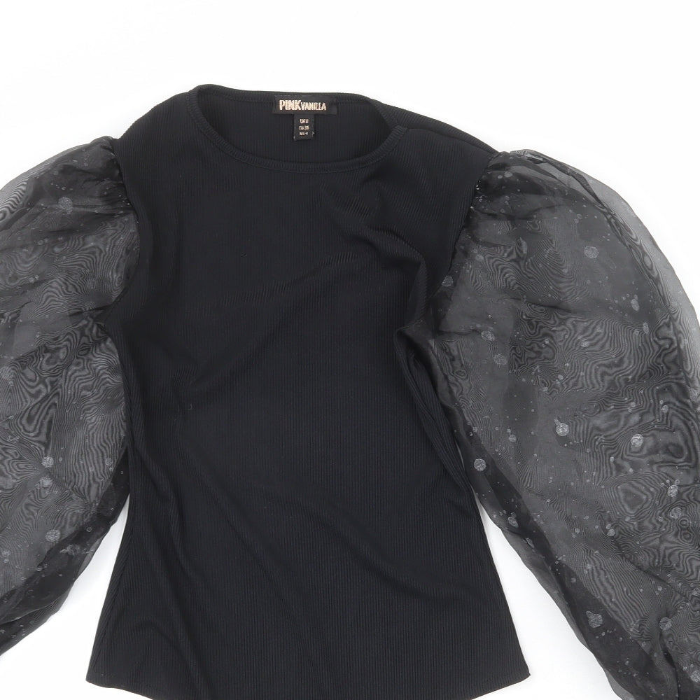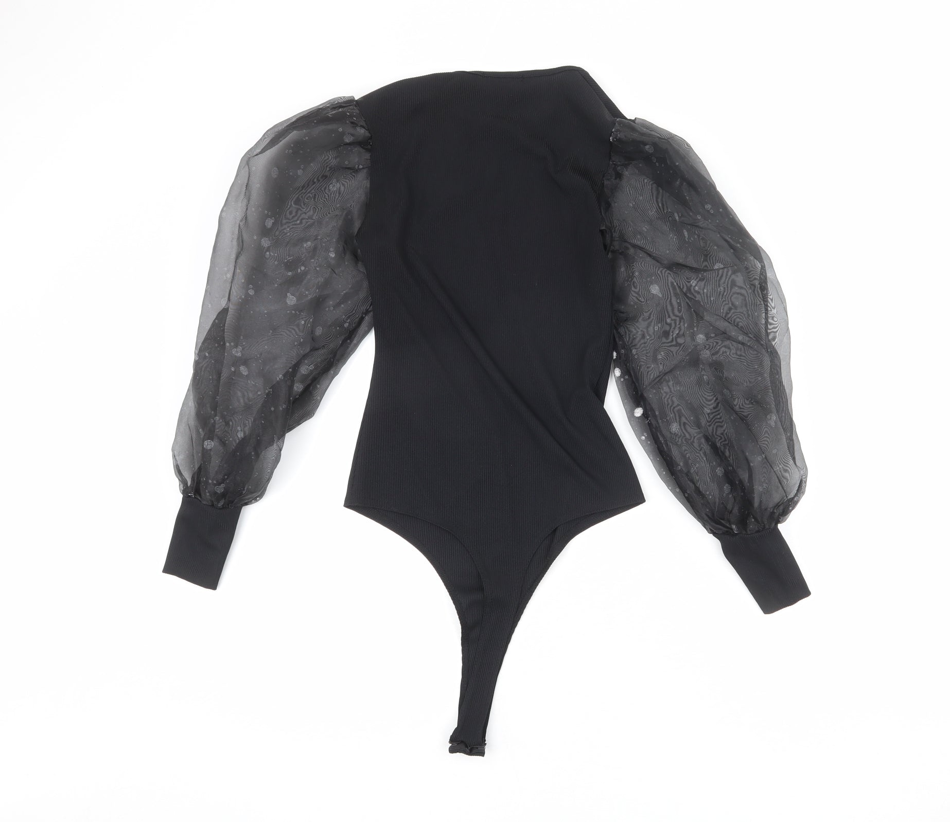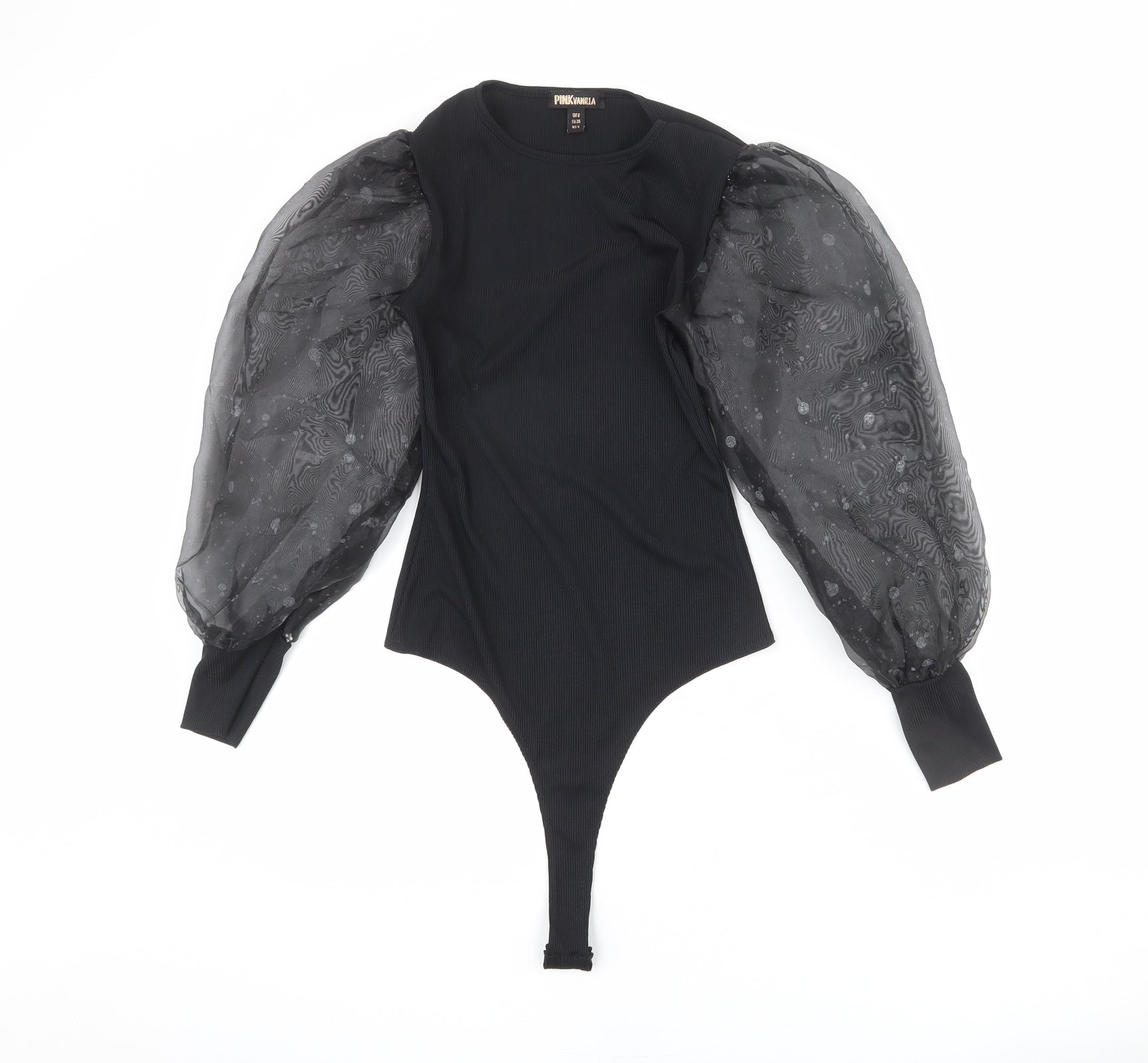 Pink Vanilla Womens Black Polyester Bodysuit One-Piece Size 8 Snap