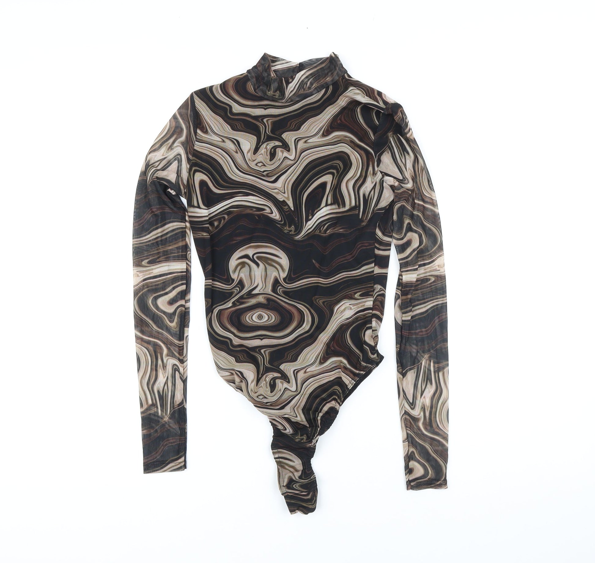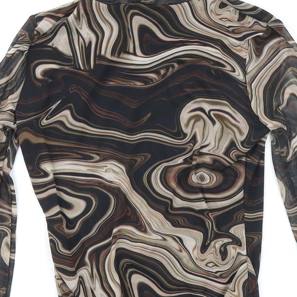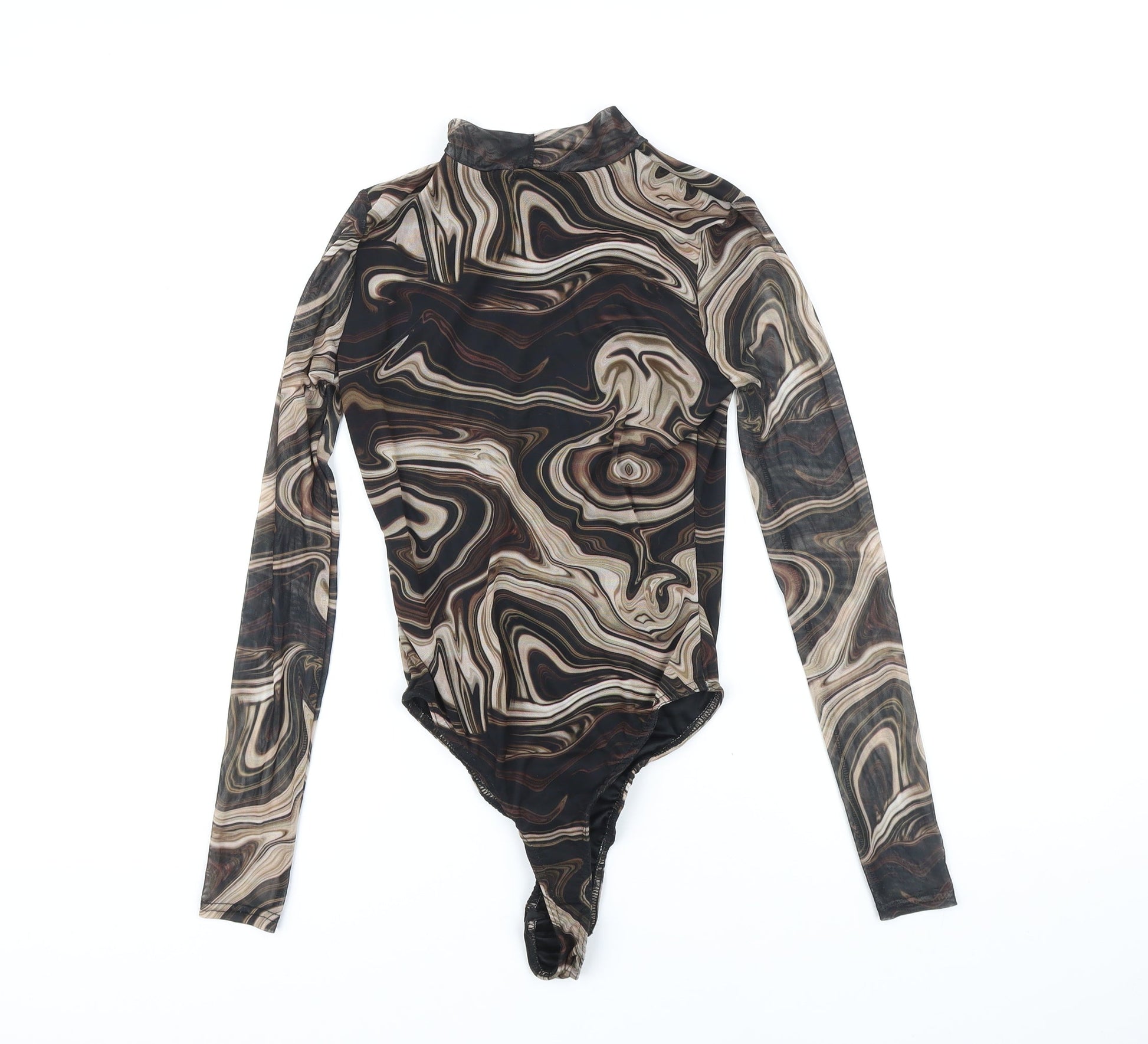Pink Vanilla Womens Brown Geometric Polyester Bodysuit One-Piece Size 8 Snap