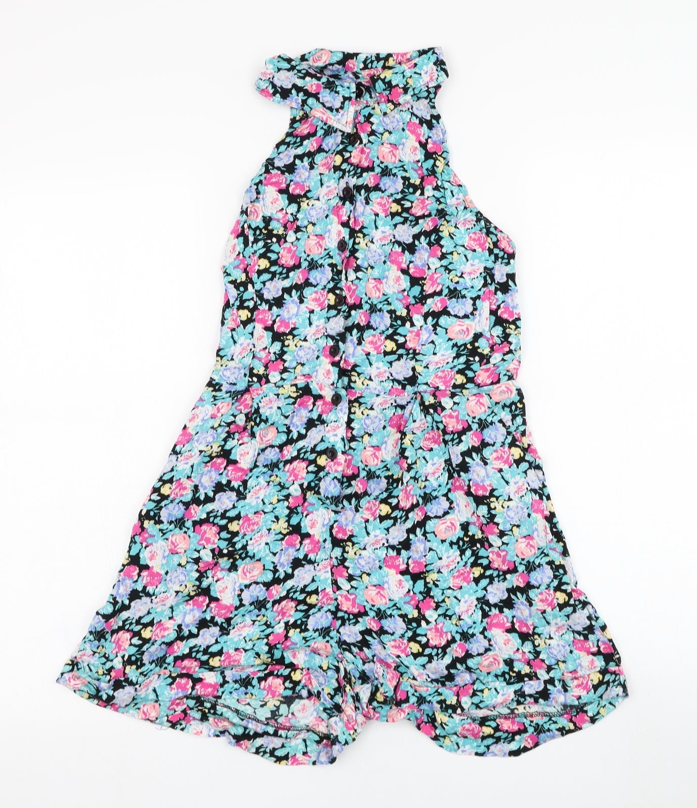 Pins & Needles Womens Black Floral Polyester Playsuit One-Piece Size S L3 in Button