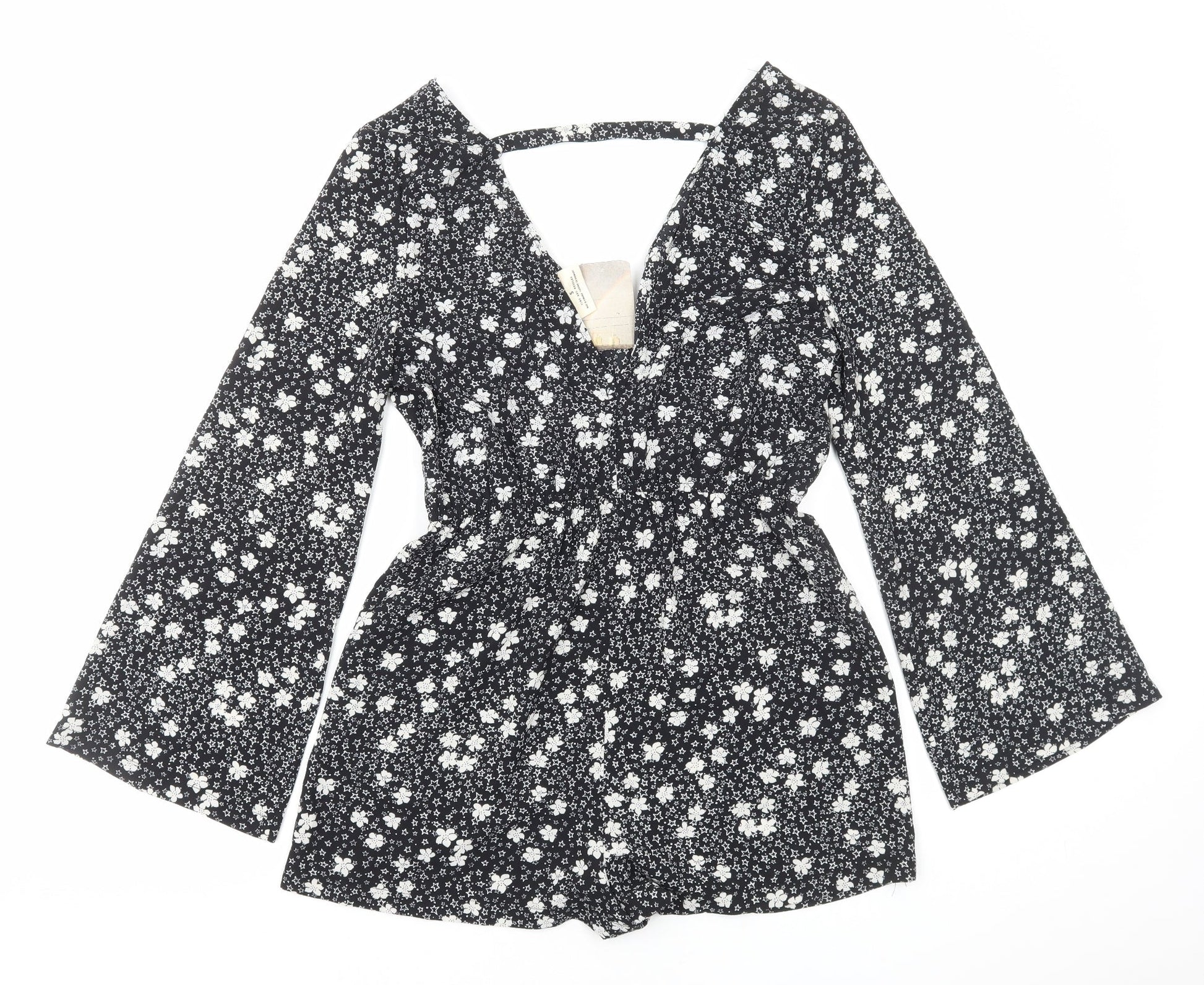 Pins & Needles Womens Black Floral Polyester Playsuit One-Piece Size S Pullover