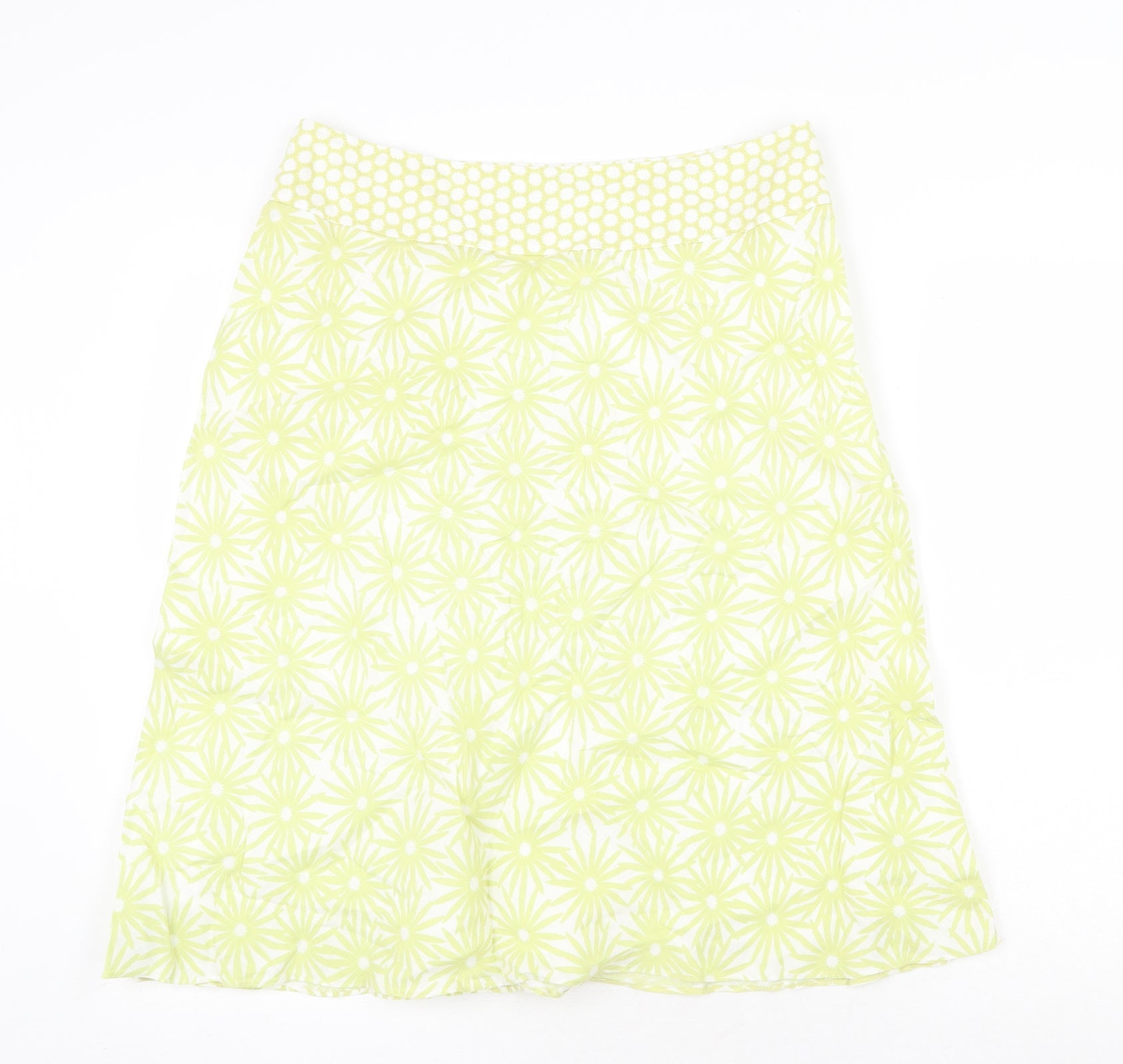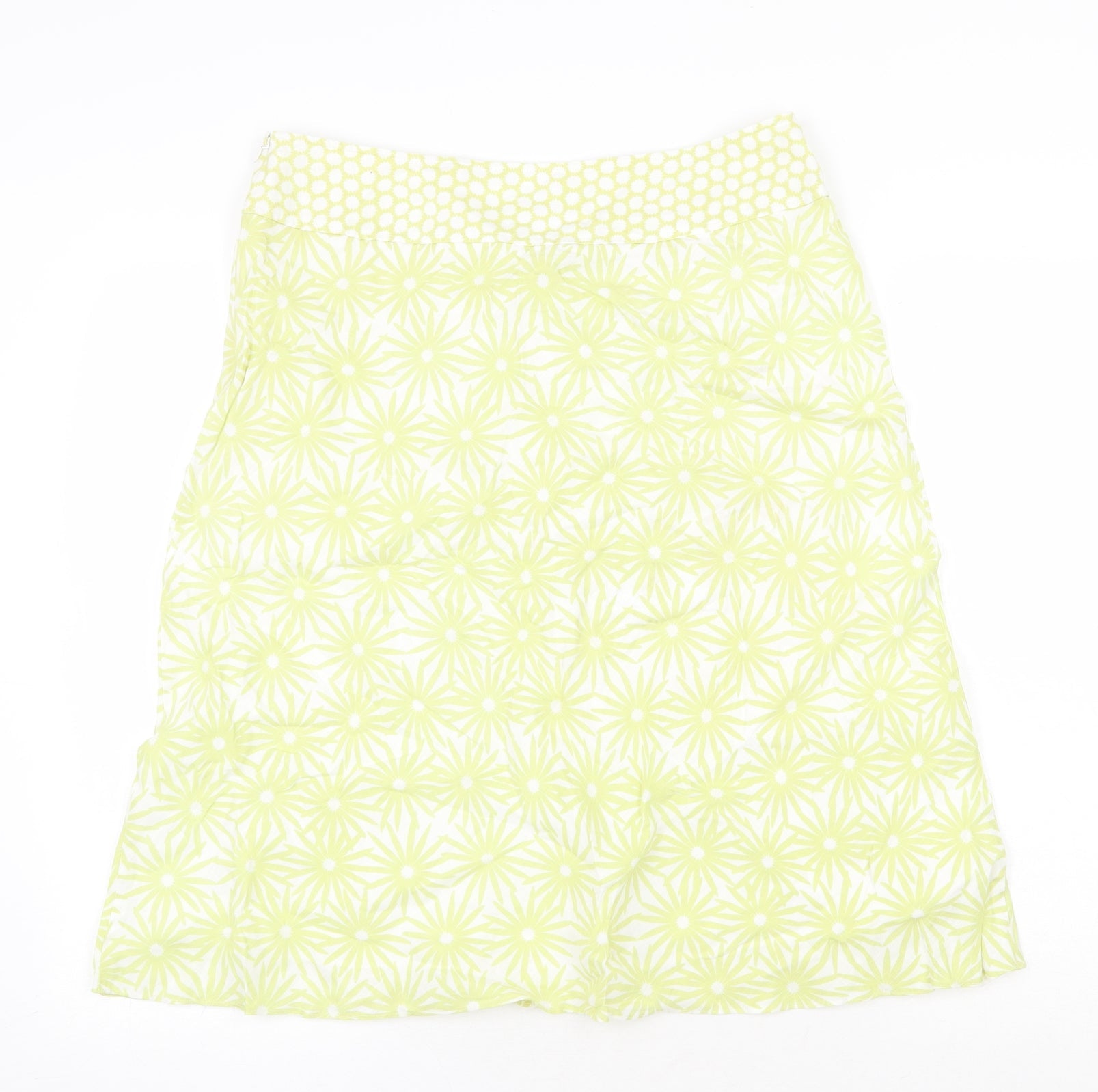 Platinum Womens Green Floral Linen Swing Skirt Size 12 Zip