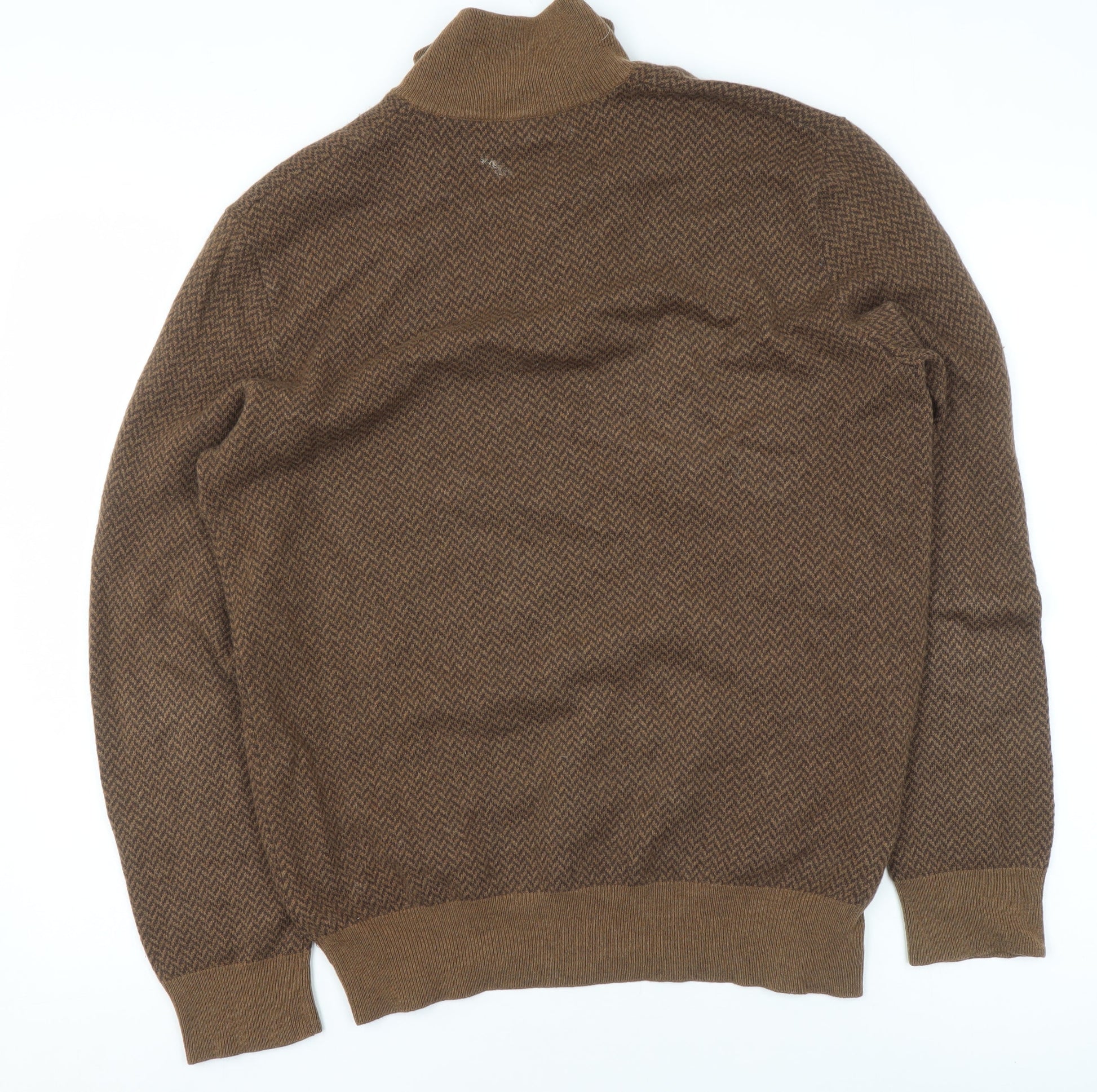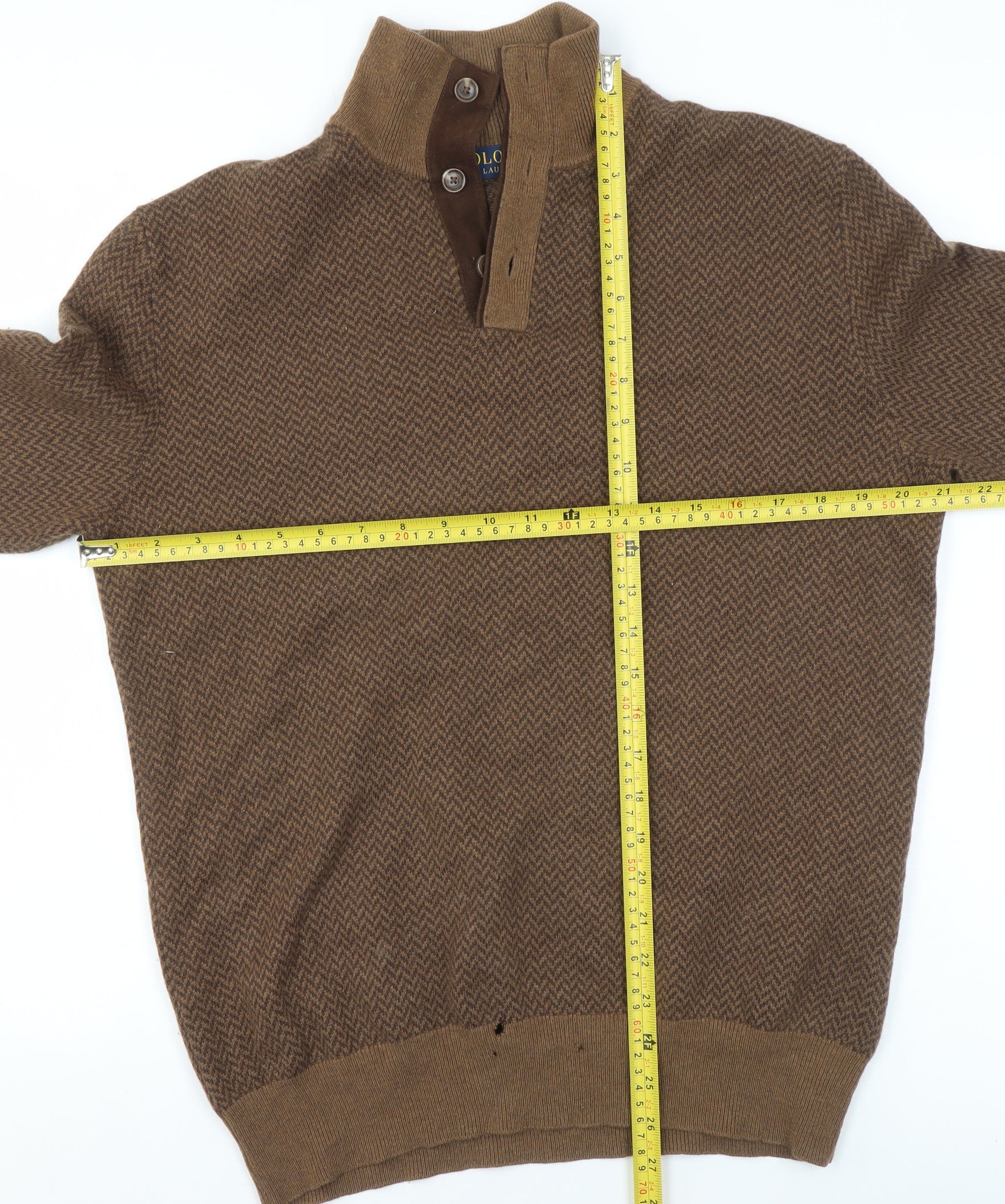 Polo Ralph Lauren Men's Brown Wool Herringbone Henley Jumper M