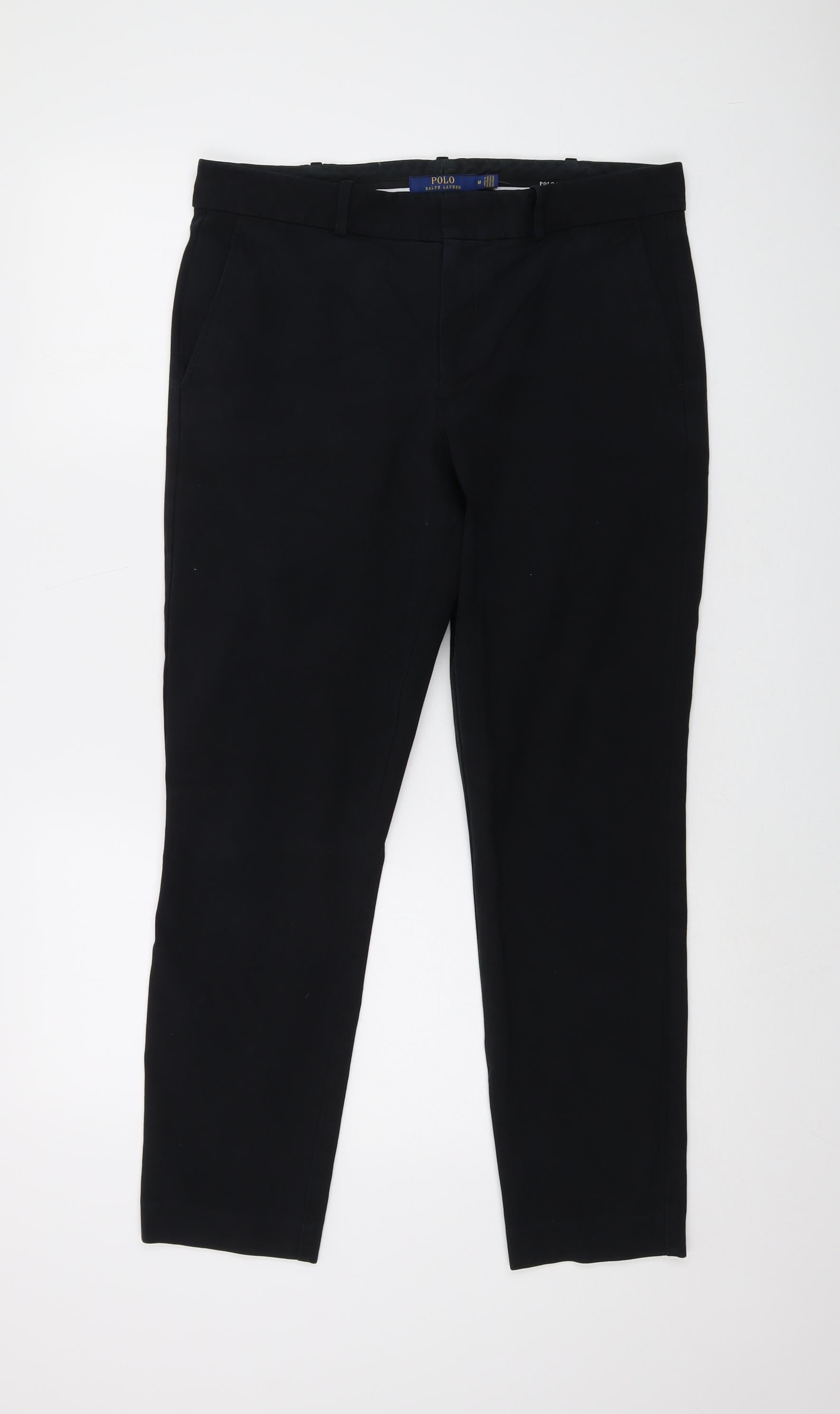 Polo Ralph Lauren Womens Black Cotton Trousers Size 10 L28 in Regular Button