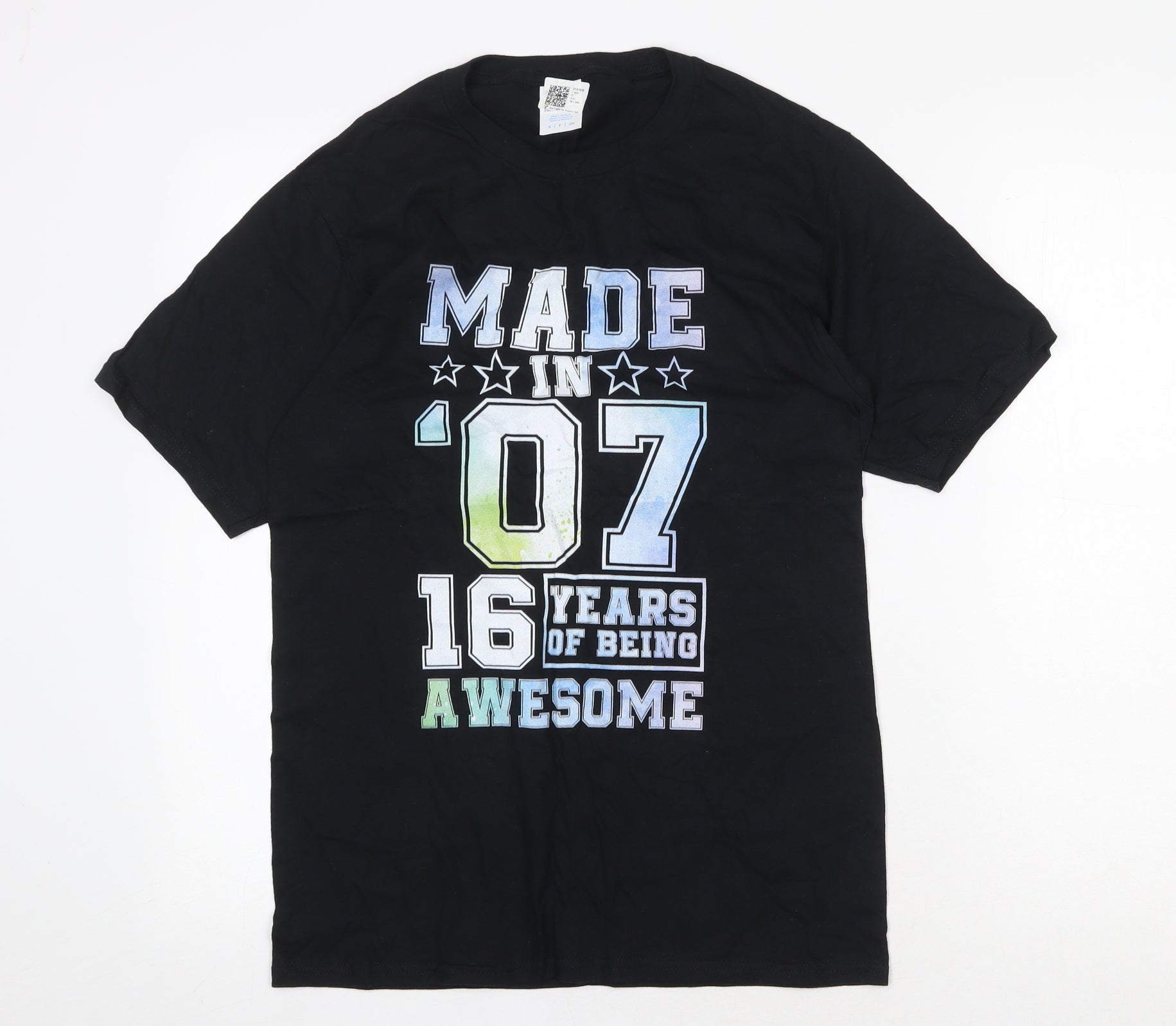 Port & Company Mens Black Cotton T-Shirt Size S Round Neck