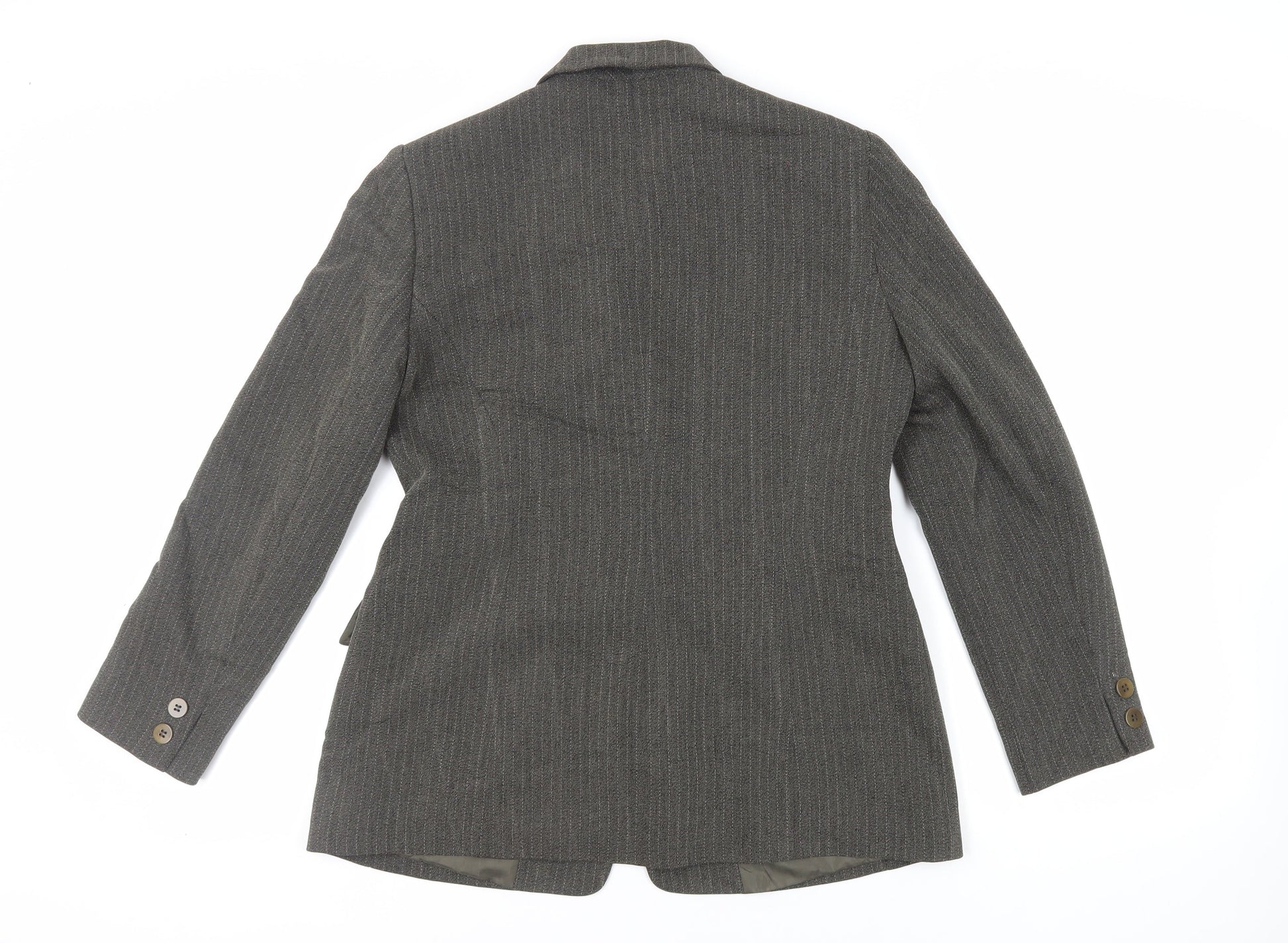 Precis Petite Womens Green Striped Jacket Blazer Size 14 Button