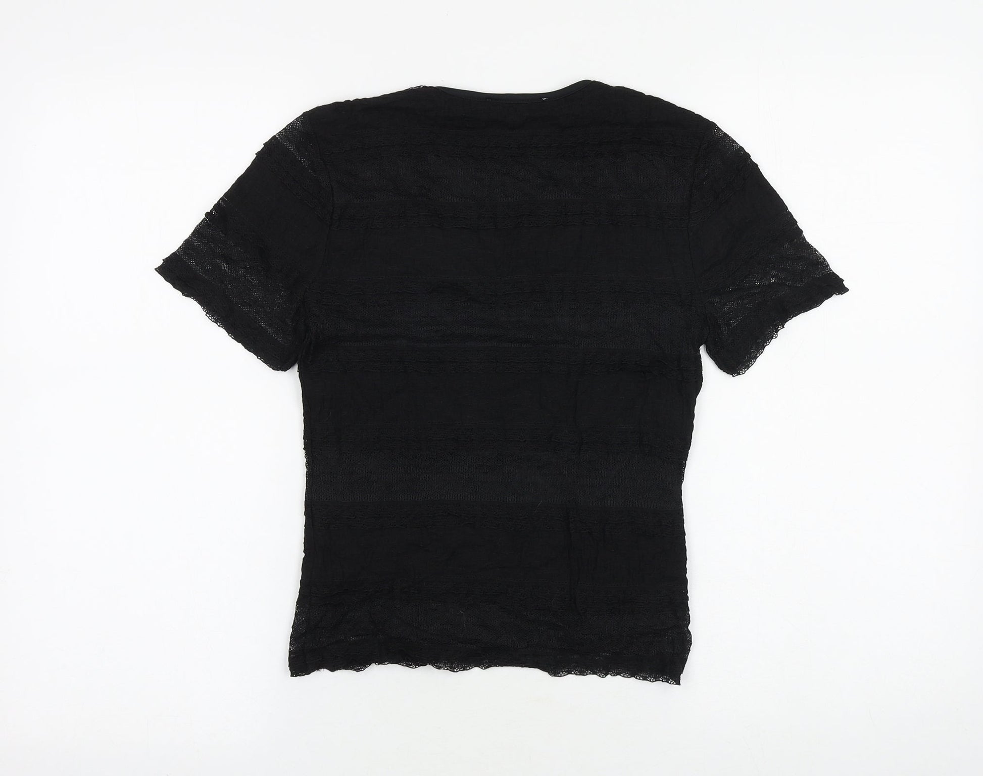 Precis Womens Black Nylon Basic T-Shirt Size XS Scoop Neck