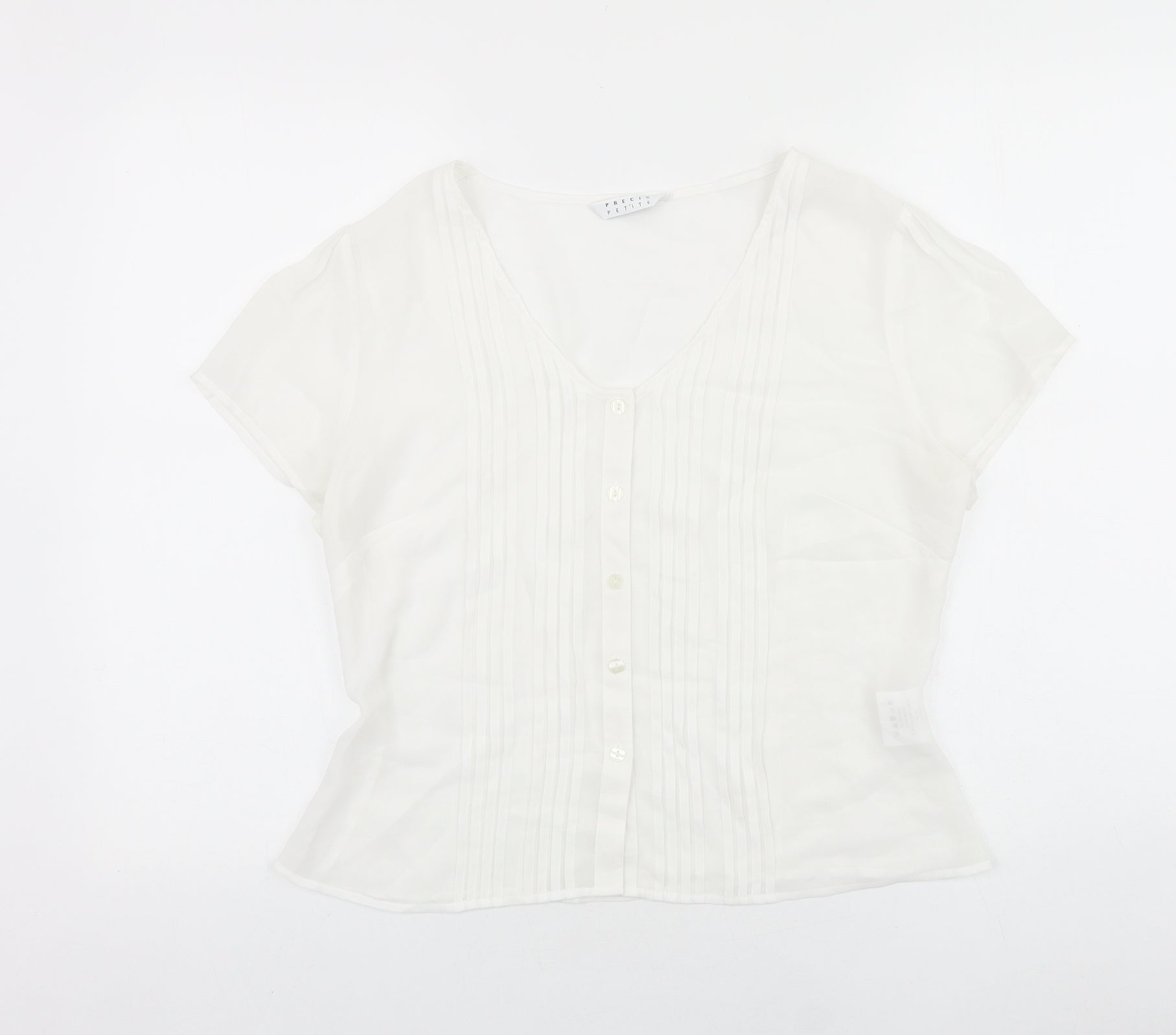 Precis Womens White Polyester Basic Blouse Size 12 V-Neck