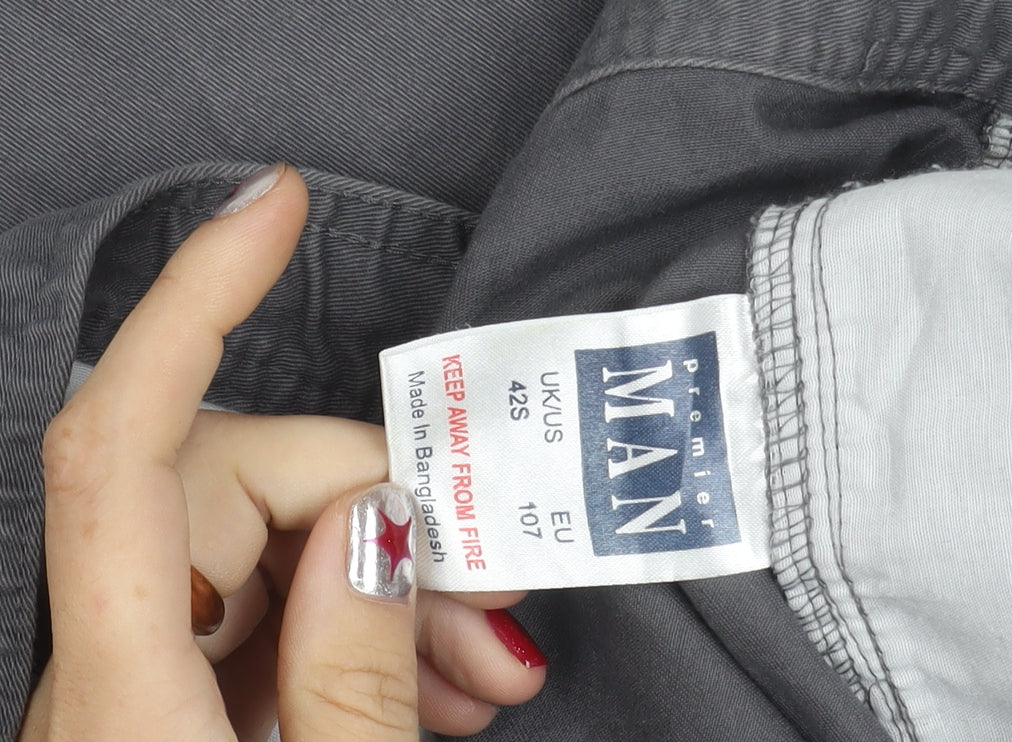 Premier Man Men's Grey 42W 30L Chino Trousers Elastic Waist Casual