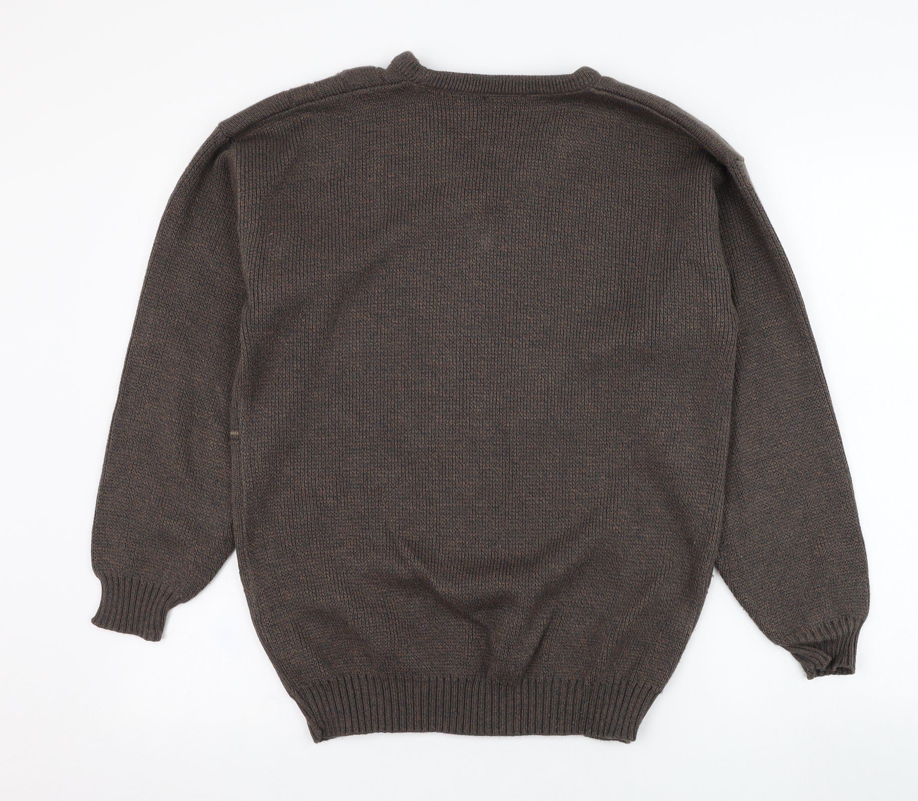 Premier Mens Brown Round Neck Acrylic Pullover Jumper Size S