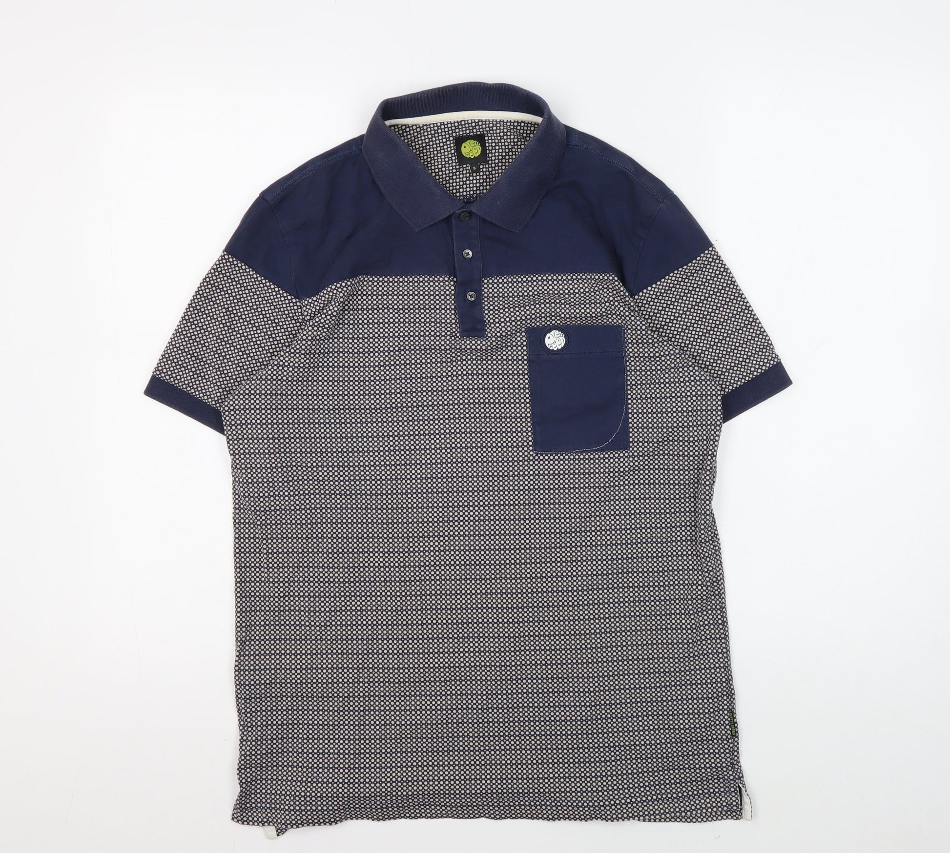 Pretty Green Men's Blue Polo Shirt, Size S, Geometric Pattern