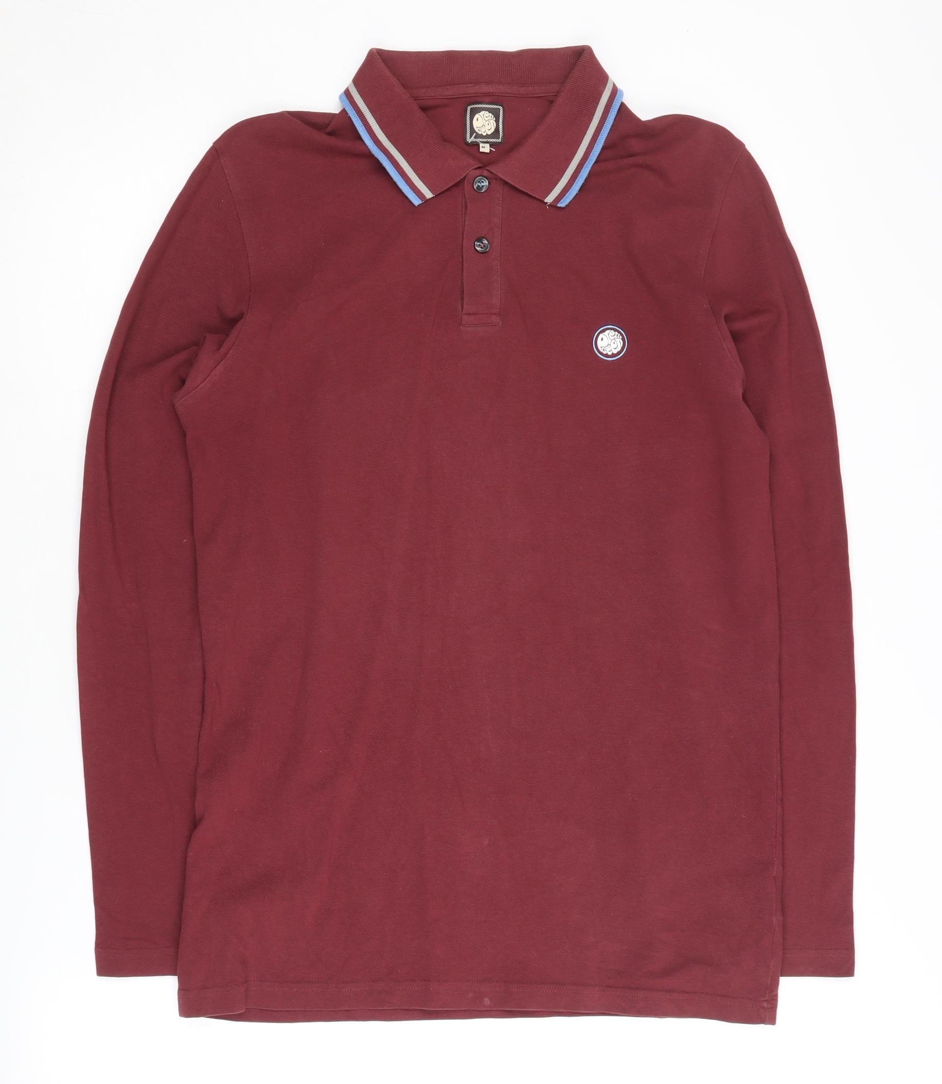Pretty Green Men's Red Long Sleeve Polo Shirt M