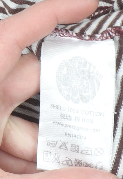Pretty Green Women’s Brown Striped Cotton Short Sleeve T-Shirt Size L