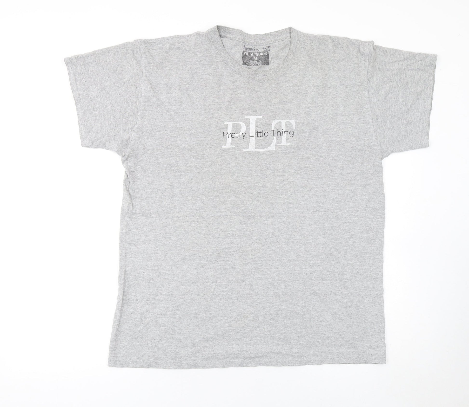 Pretty Little Thing Women’s Grey Basic Logo Cotton T-Shirt M