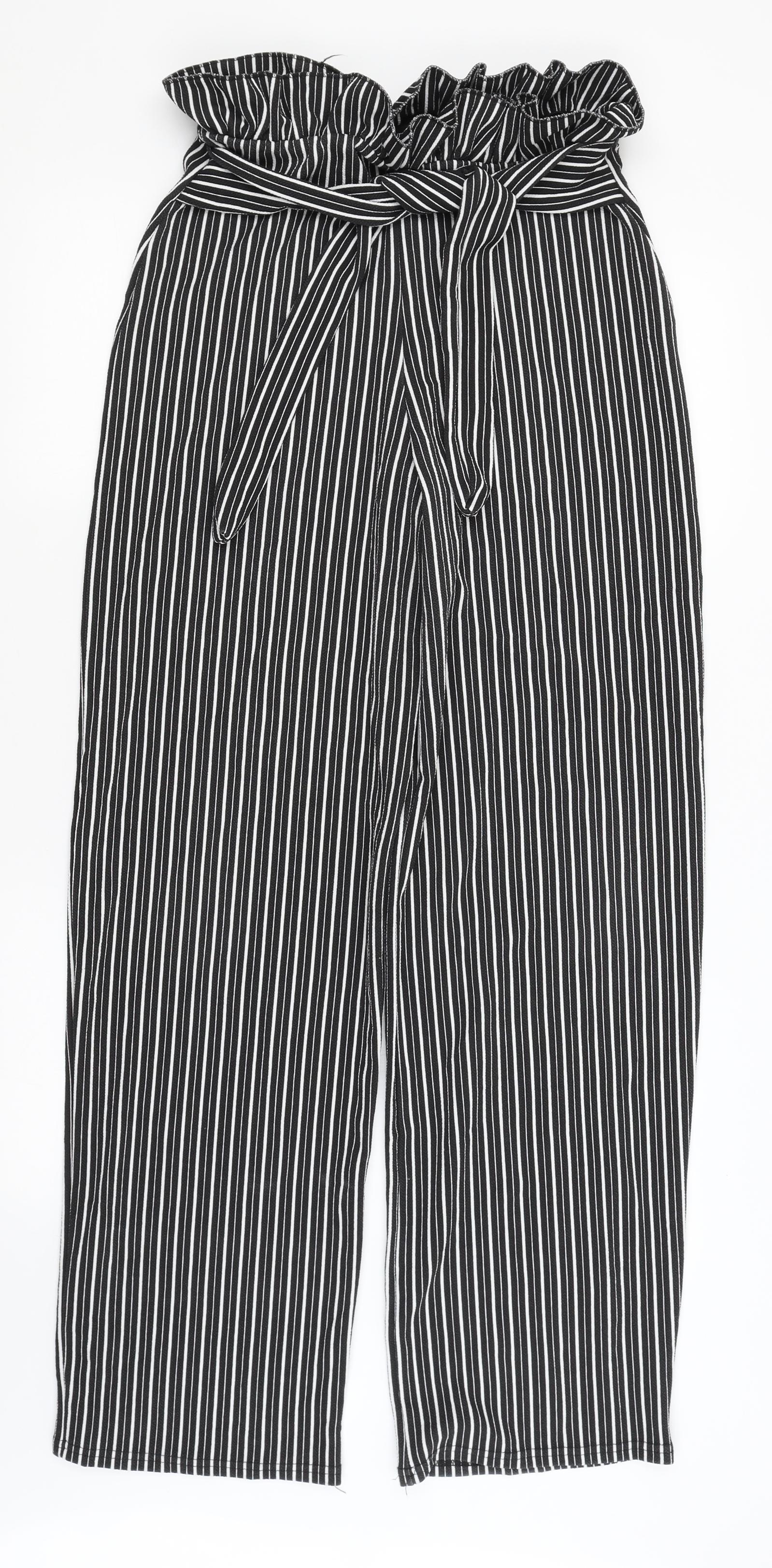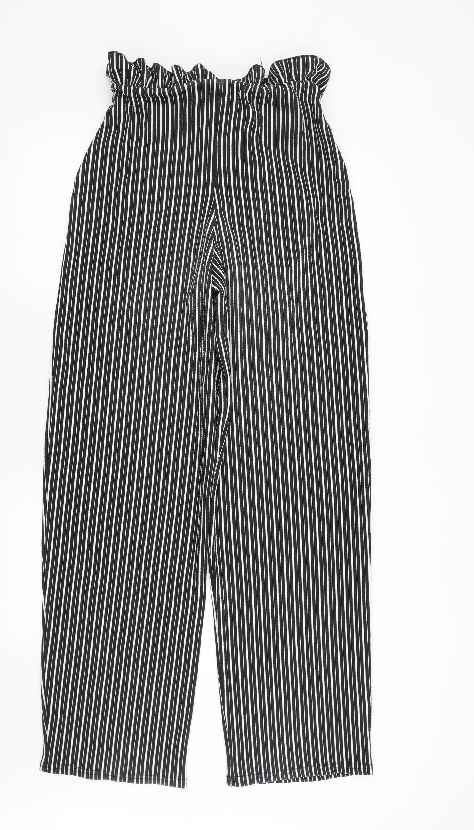 Pretty Little Thing Womens Black Striped Trousers Size 10 L32.5 in
