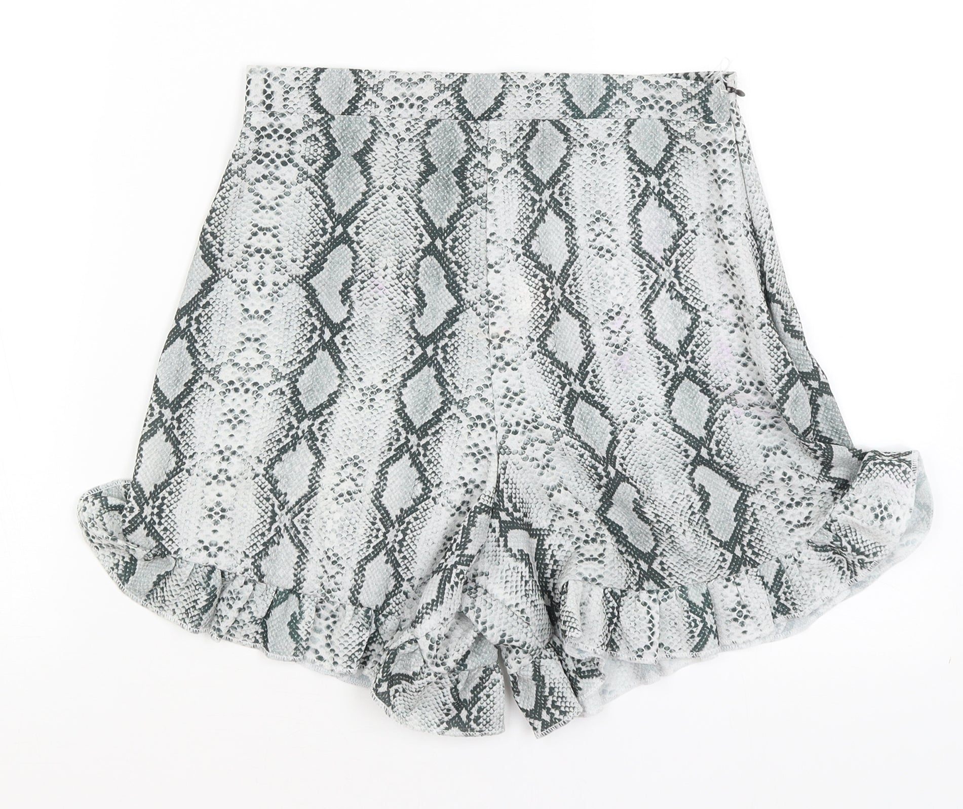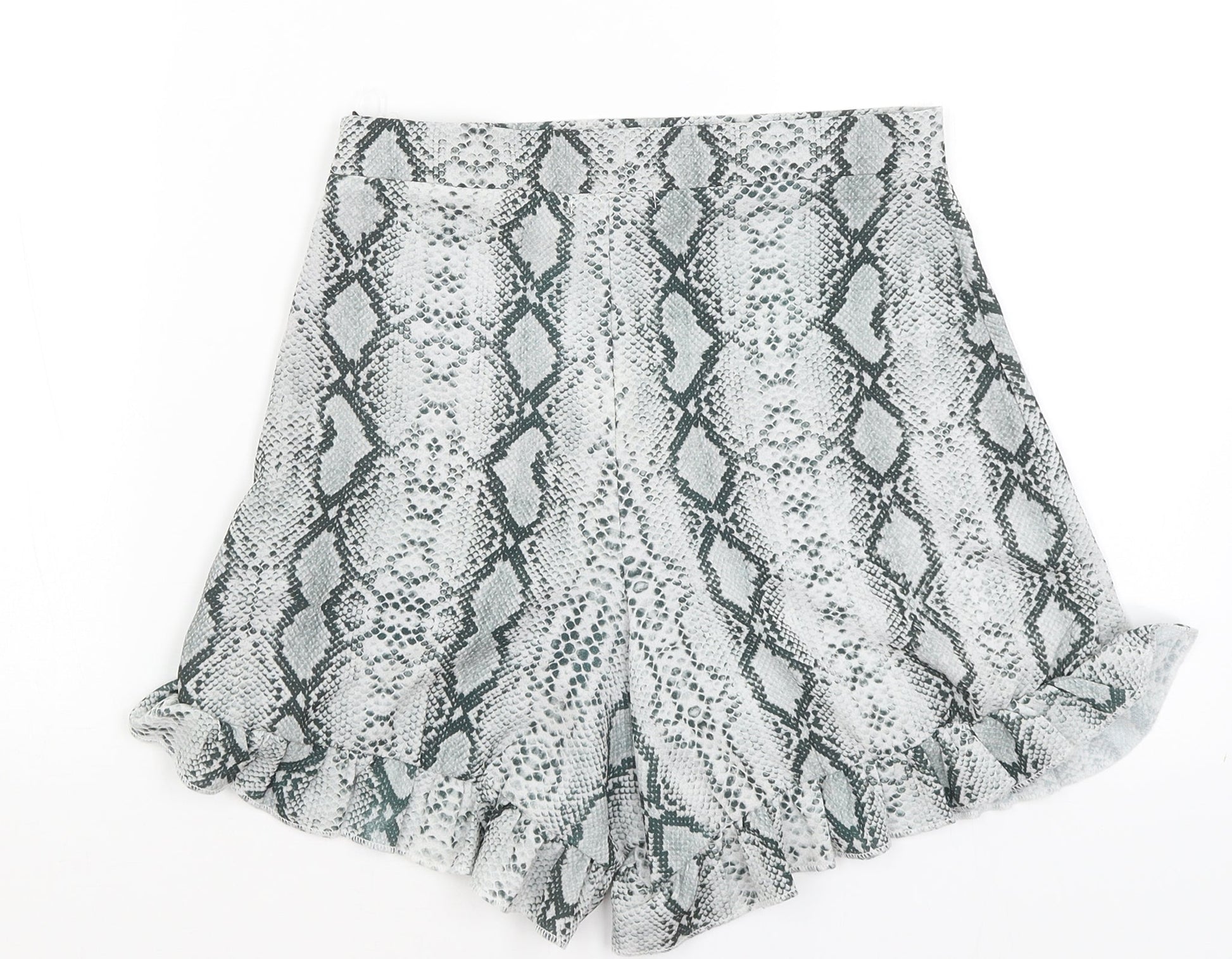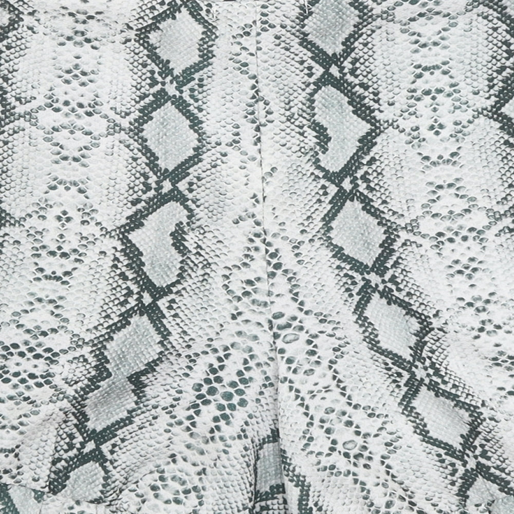 Pretty Little Thing Womens Green Animal Print Paperbag Shorts Size 8