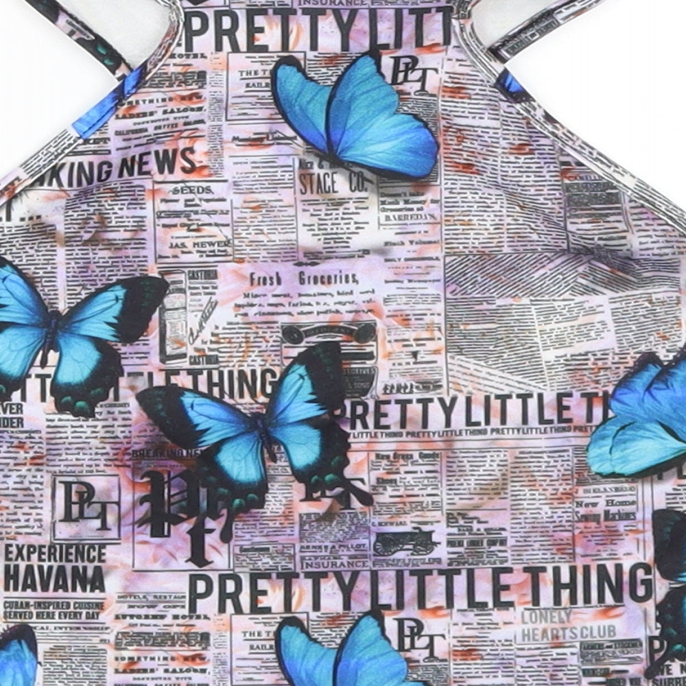 Pretty Little Thing Womens Purple Animal Print Cropped Tank Size 14 - Butterflies