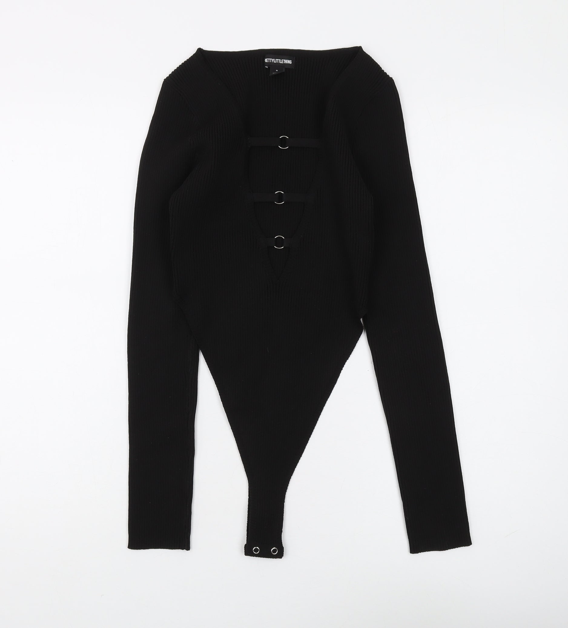 PrettyLittleThing Black Bodysuit, Women, M, Casual Stretch