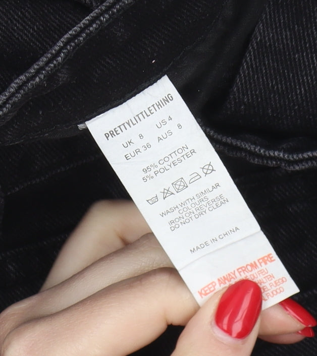 PrettyLittleThing Black Mom Jeans UK 8 Distressed Style