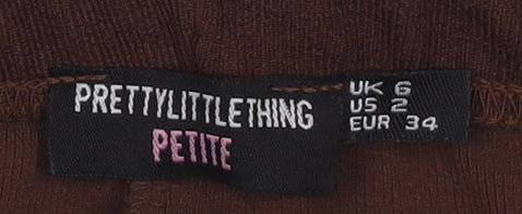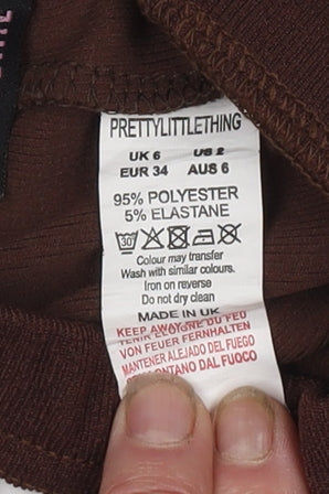 PrettyLittleThing Petite Brown Halterneck Flared Jumpsuit UK 6 Polyester Blend